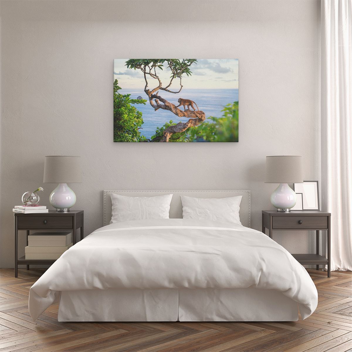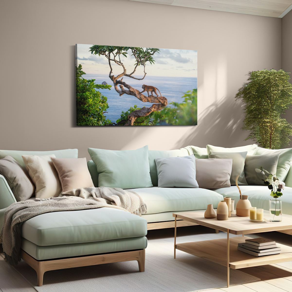 Schilderij Aap Klimt In Een Boom Aan Het Water