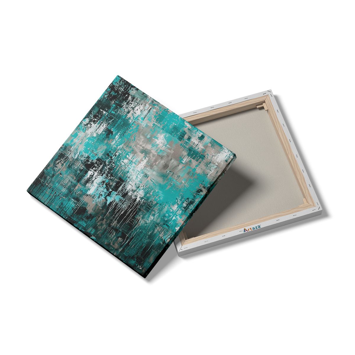 Schilderij Abstract Kunstwerk in Groenblauw en Zwart