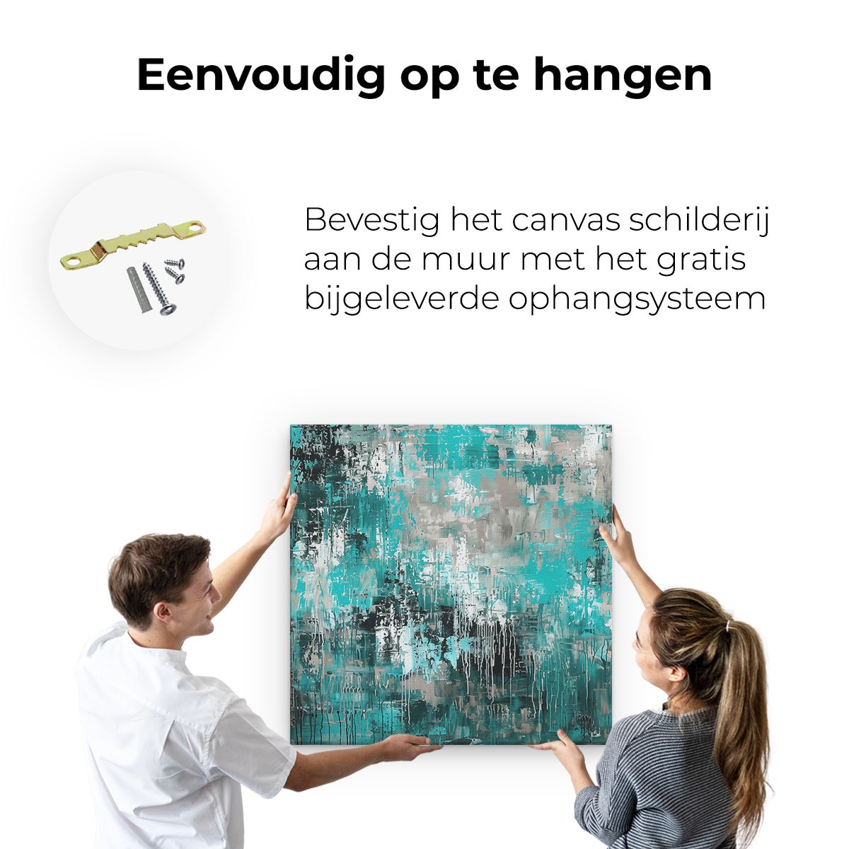 Bij aankoop ontvang je een meegeleverd ophangsysteem, zodat je op een simpele en snelle wijze het schilderij boven de bank of bed kan monteren.