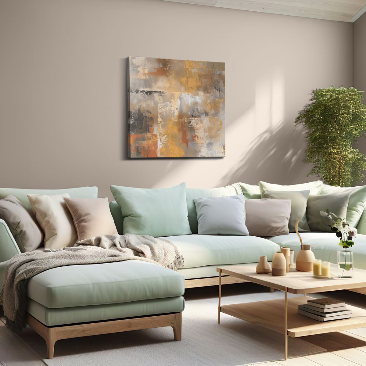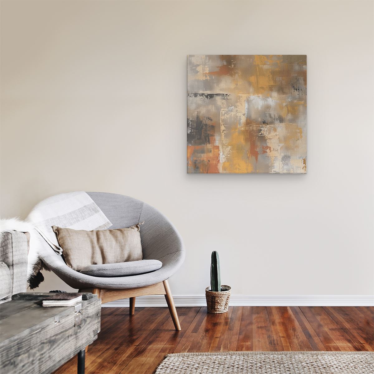 Schilderij Abstract Kunstwerk in Oranje en Beige