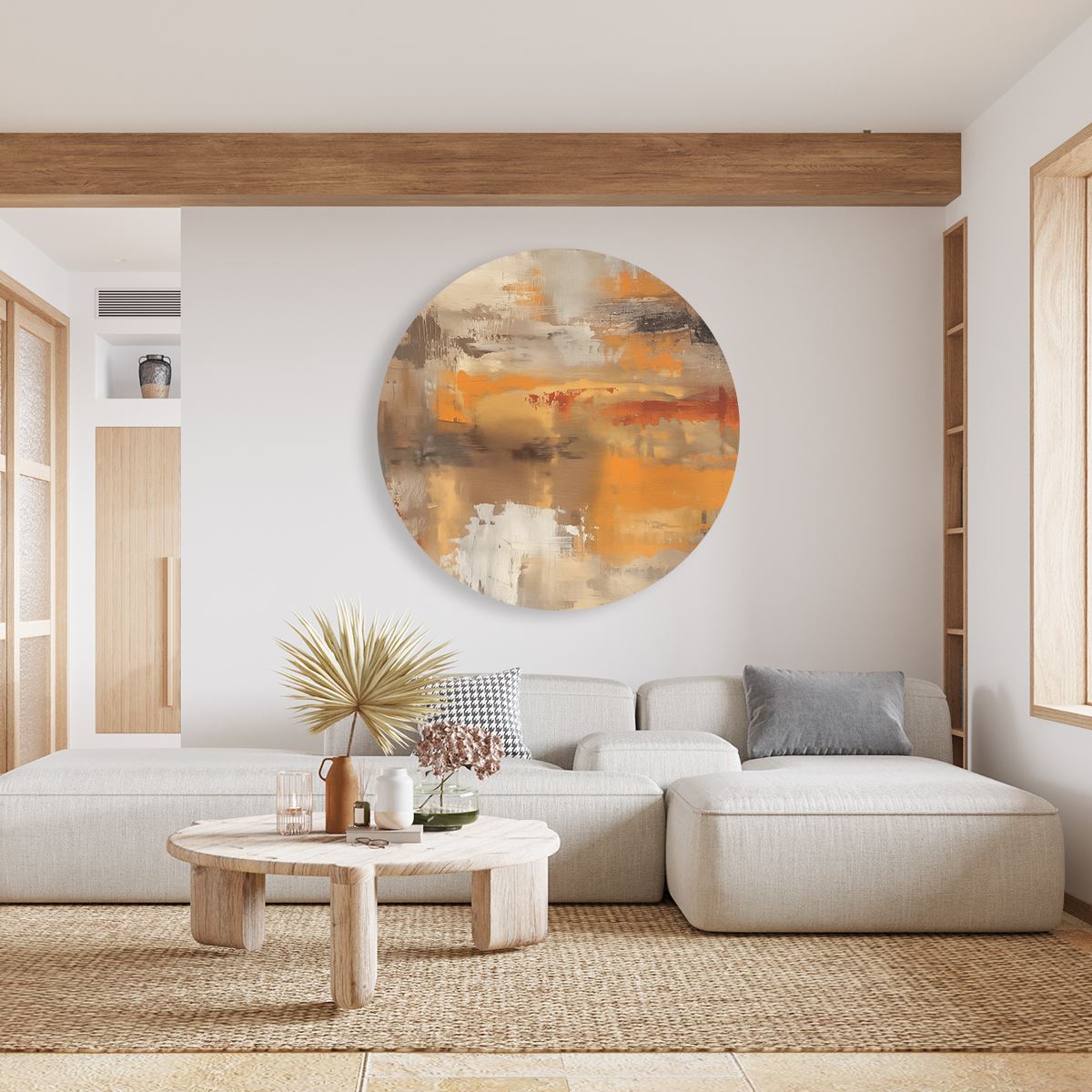 Wandcirkel Abstract Kunstwerk in Oranje en Beige