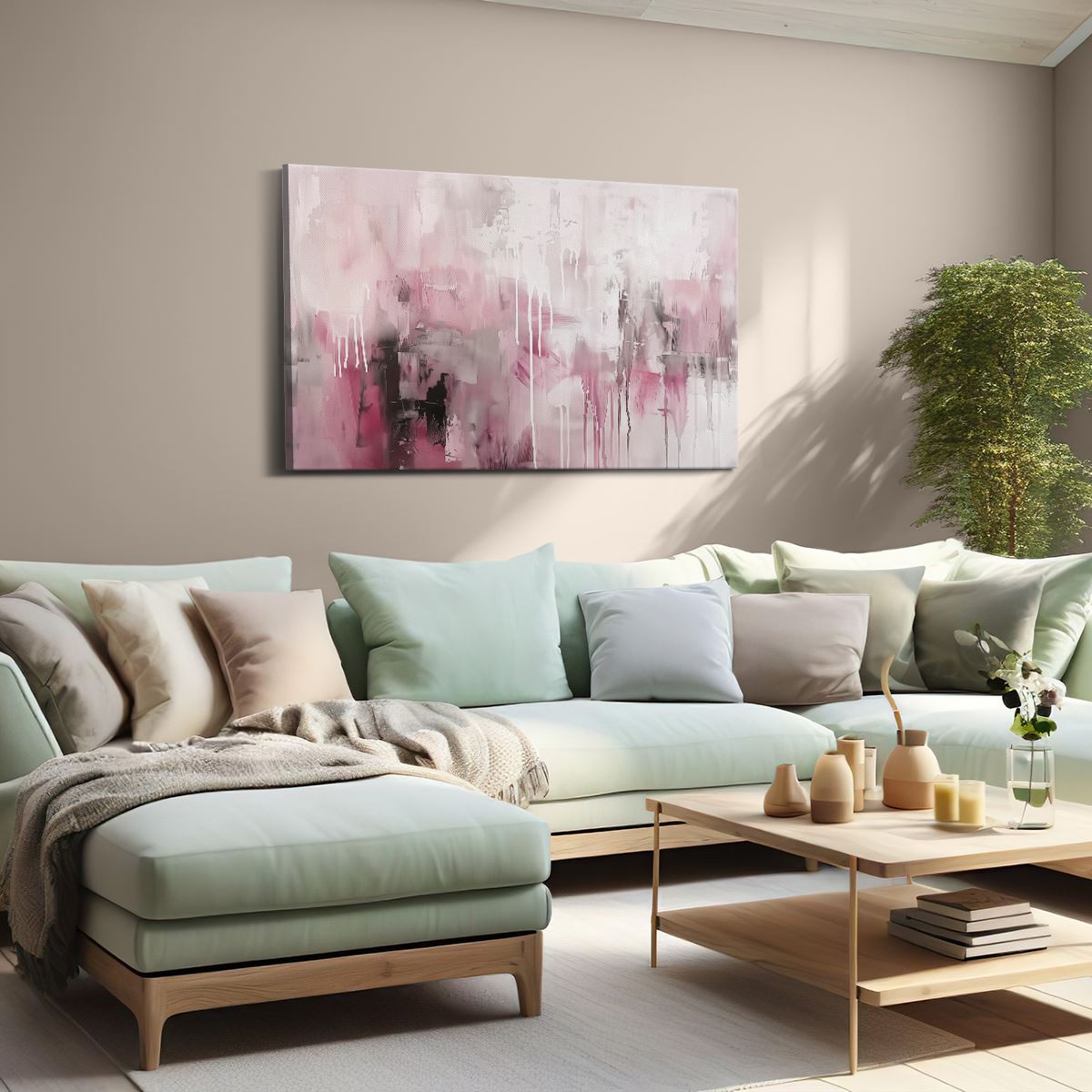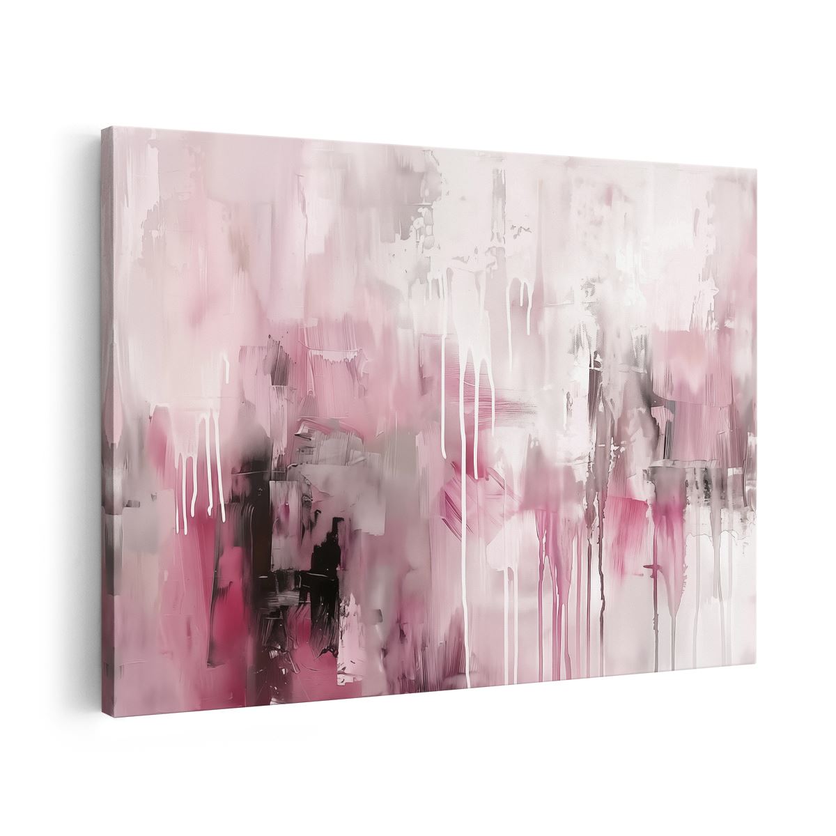 Schilderij Abstract Kunstwerk in Roze en Zwart