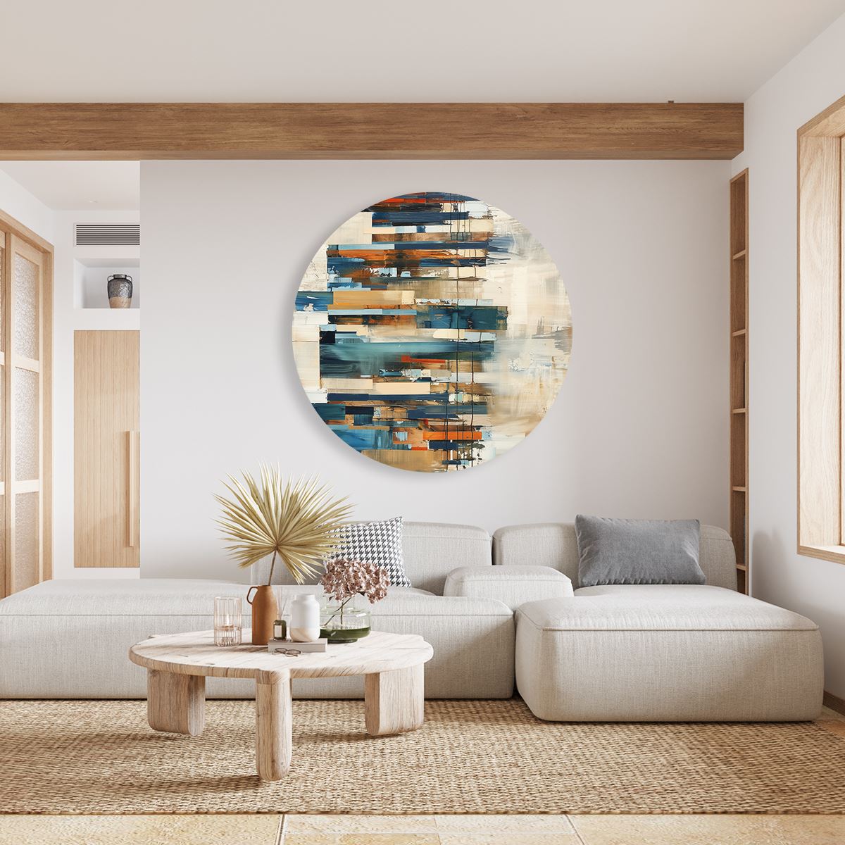Wandcirkel Abstract Kunstwerk met Blauwe, Bruine en Beige Kleuren