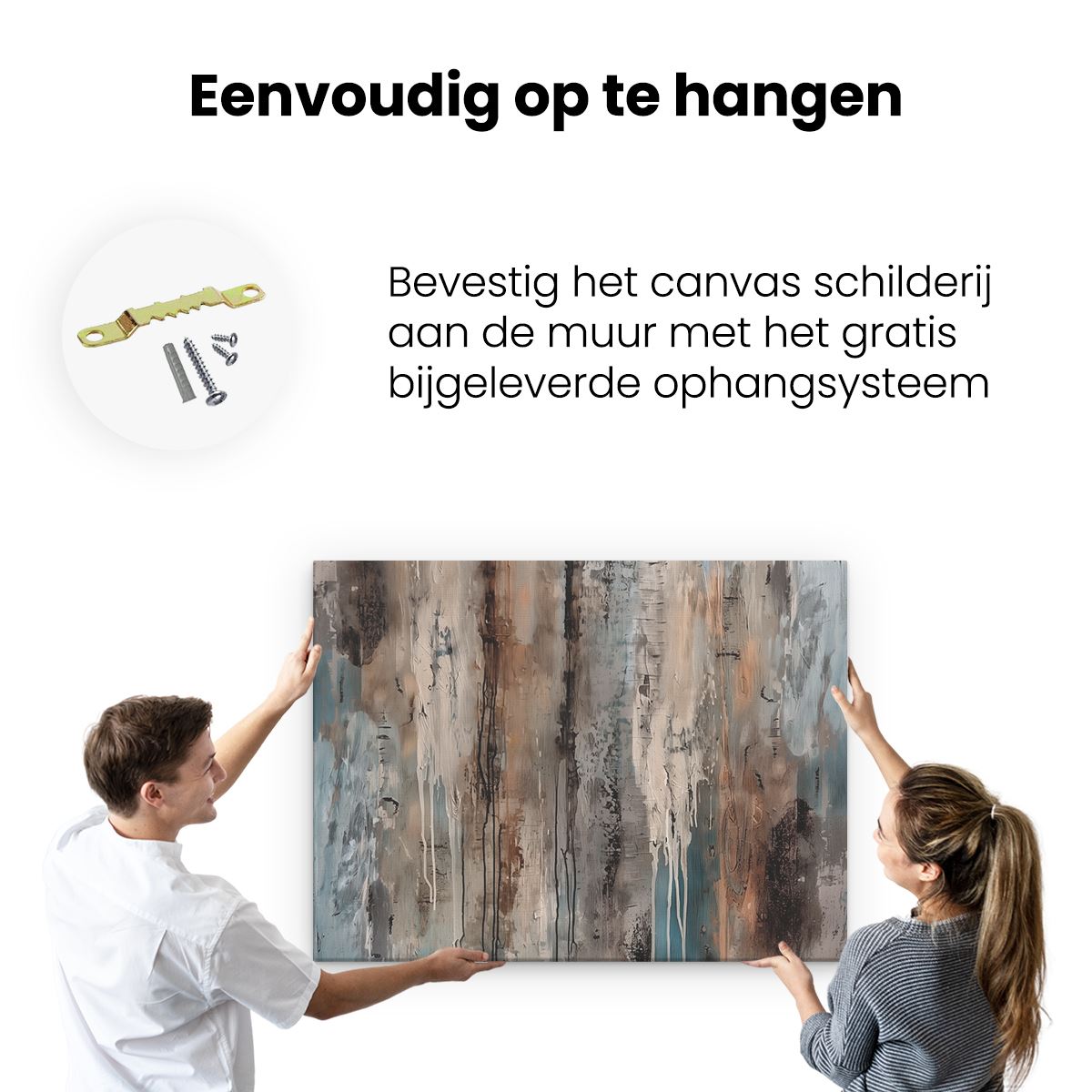 Bij aankoop ontvang je een meegeleverd ophangsysteem, zodat je op een simpele en snelle wijze het schilderij boven de bank of bed kan monteren.