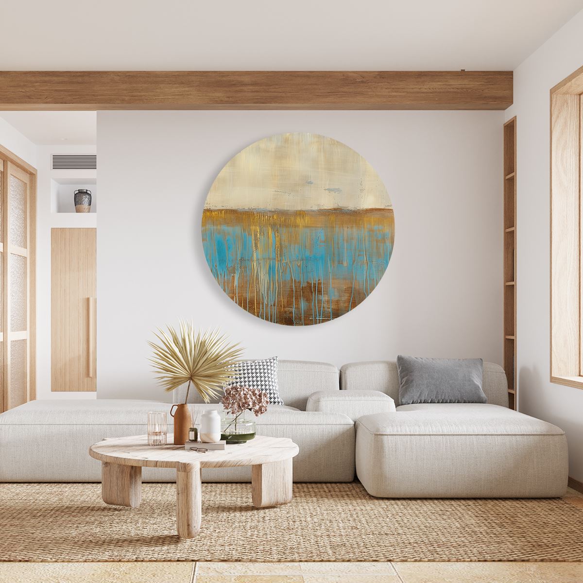 Wandcirkel Abstract Kunstwerk met Blauwe en Bruine Kleuren