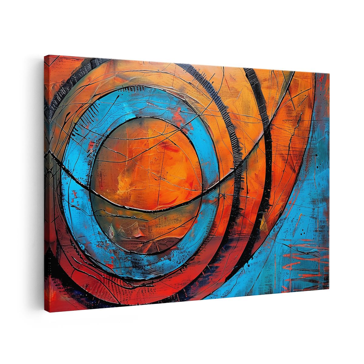 Schilderij Abstract Kunstwerk met Blauwe en Oranje Cirkels