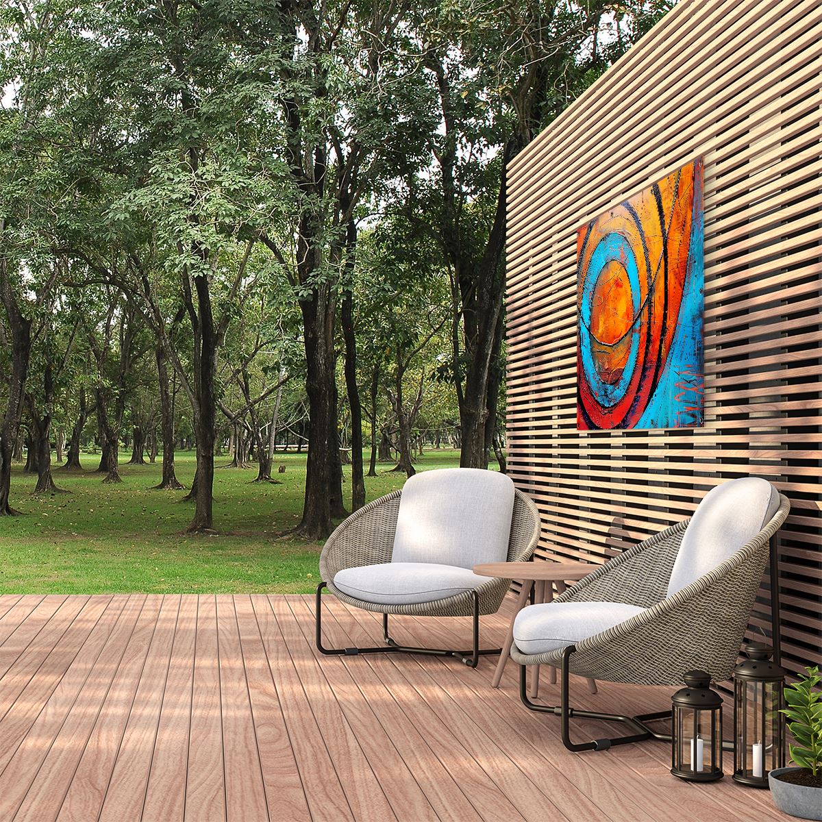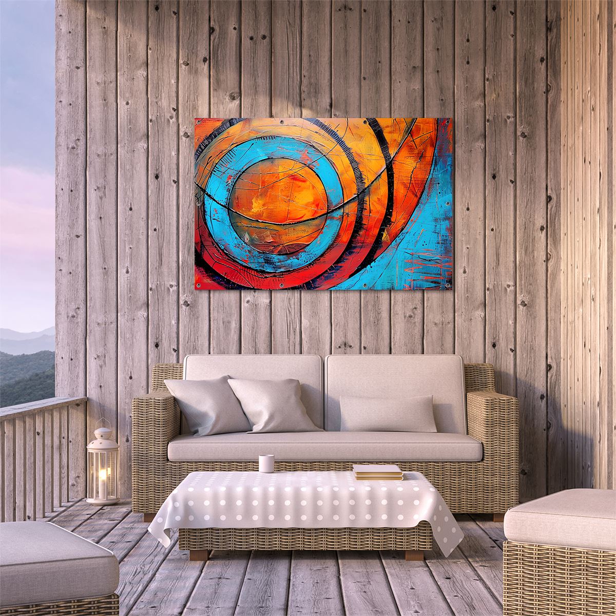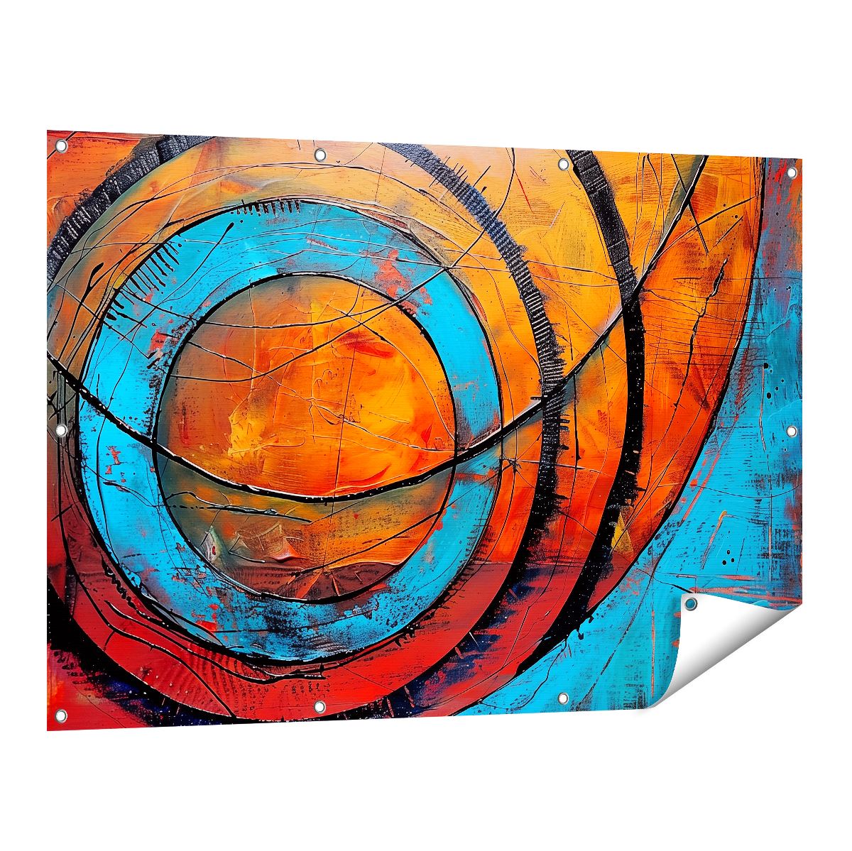 Tuinposter Abstract Kunstwerk met Blauwe en Oranje Cirkels