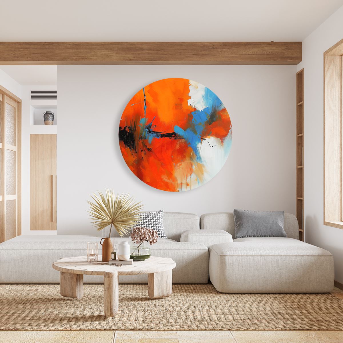 Wandcirkel Abstract Kunstwerk met Blauwe en Oranje Kleuren