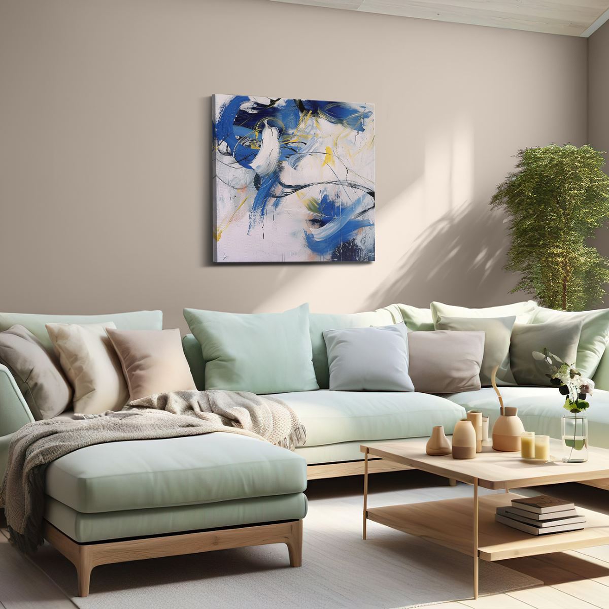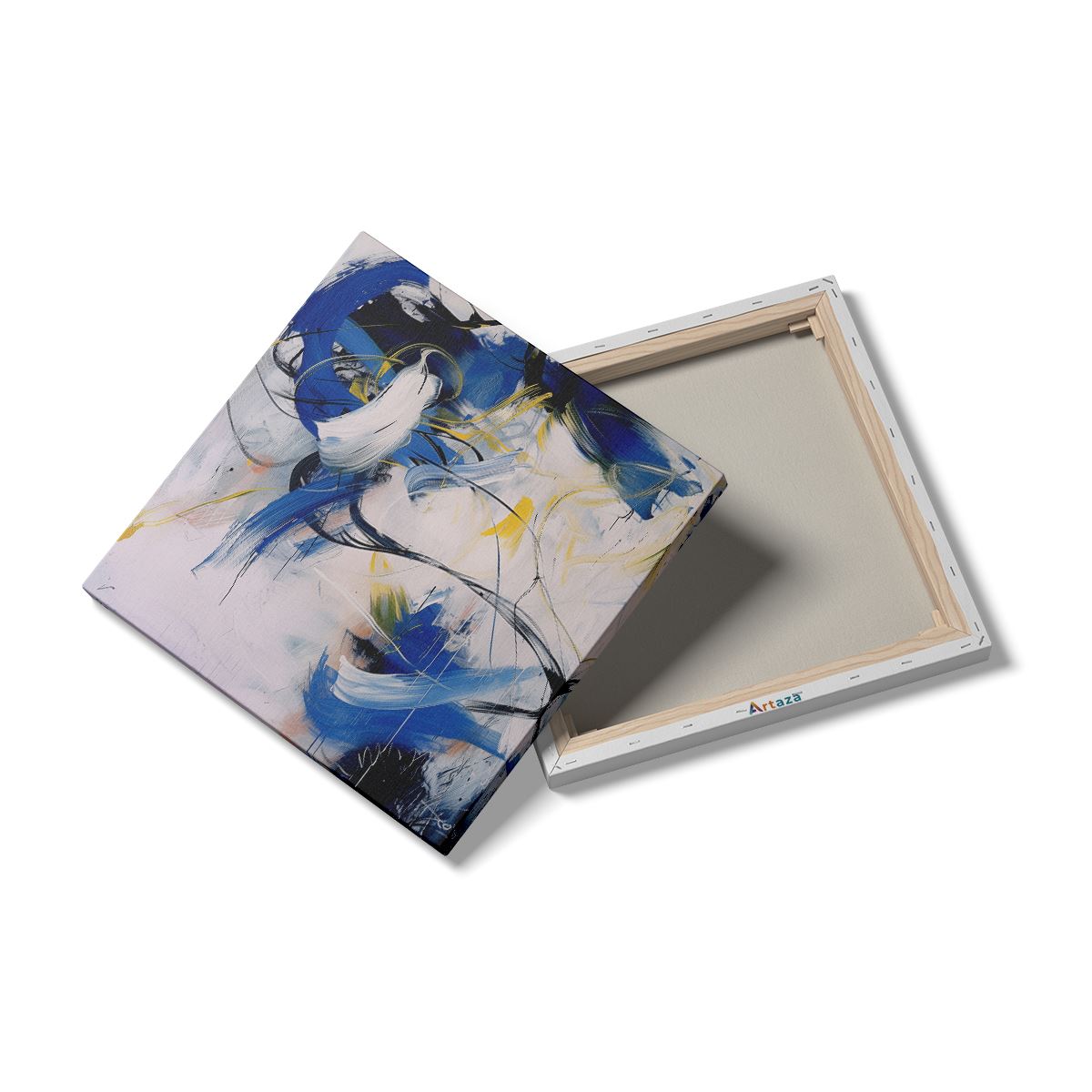 Schilderij Abstract Kunstwerk met Blauwe en Witte Kleuren