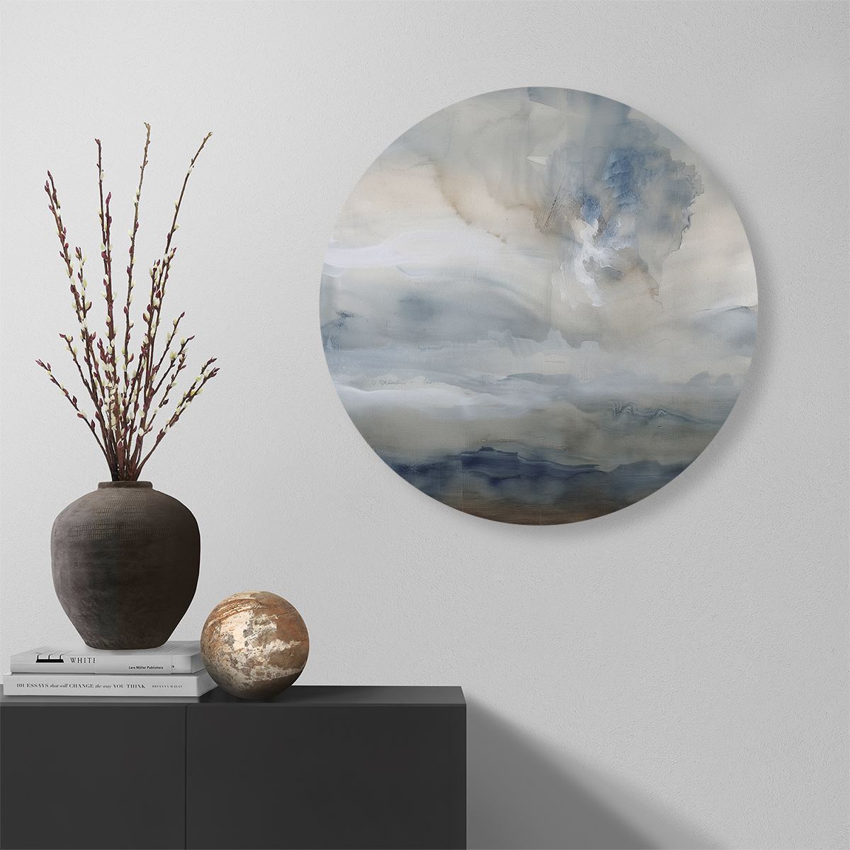 Wandcirkel Abstract Kunstwerk met Blauwe en Witte Wolken