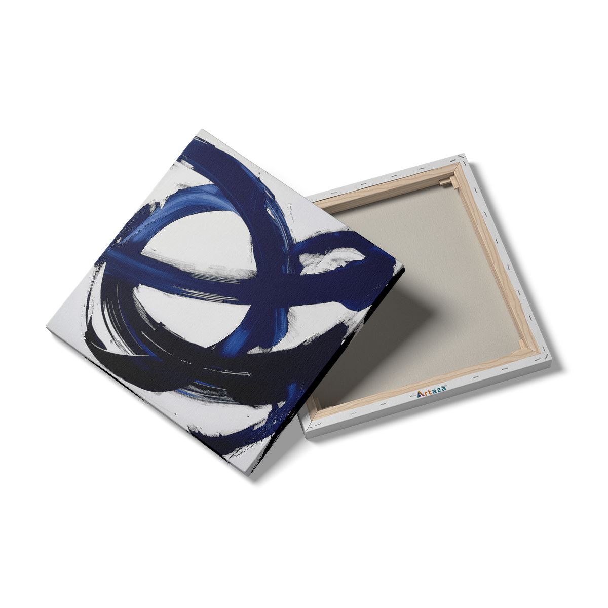 Schilderij Abstract Kunstwerk met Blauwe en Zwarte Strepen