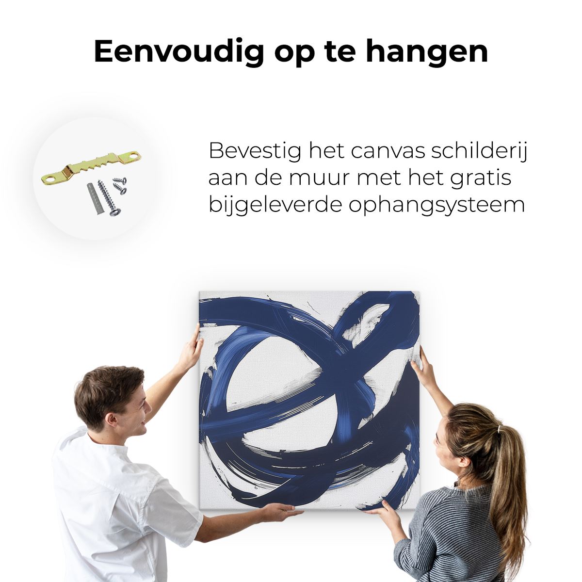 Bij aankoop ontvang je een meegeleverd ophangsysteem, zodat je op een simpele en snelle wijze het schilderij boven de bank of bed kan monteren.