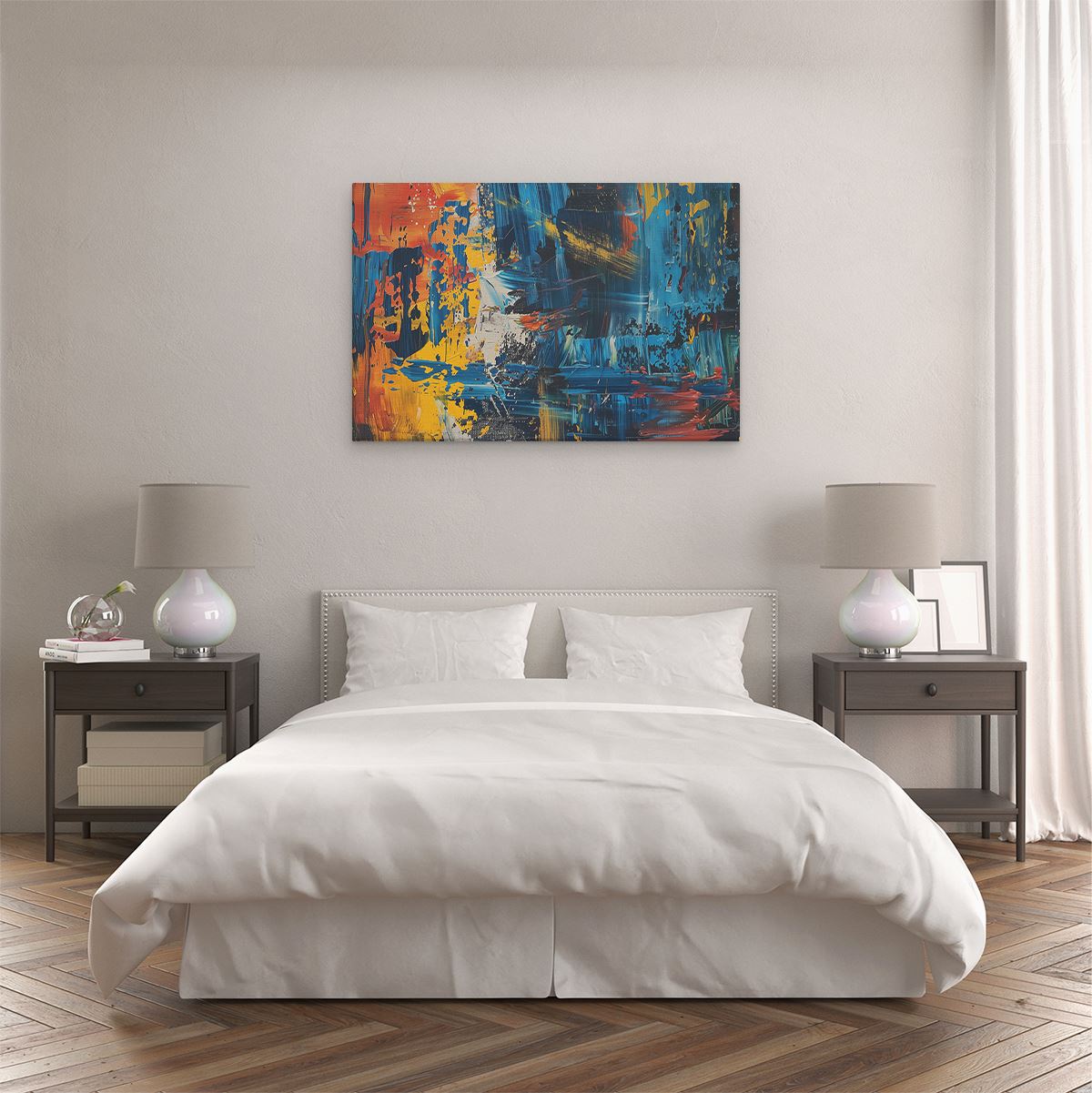 Schilderij Abstract Kunstwerk met Blauwe, Gele en Rode Kleuren