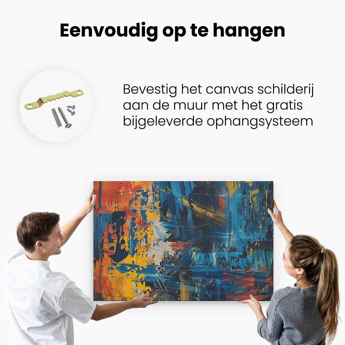 Bij aankoop ontvang je een meegeleverd ophangsysteem, zodat je op een simpele en snelle wijze het schilderij boven de bank of bed kan monteren.
