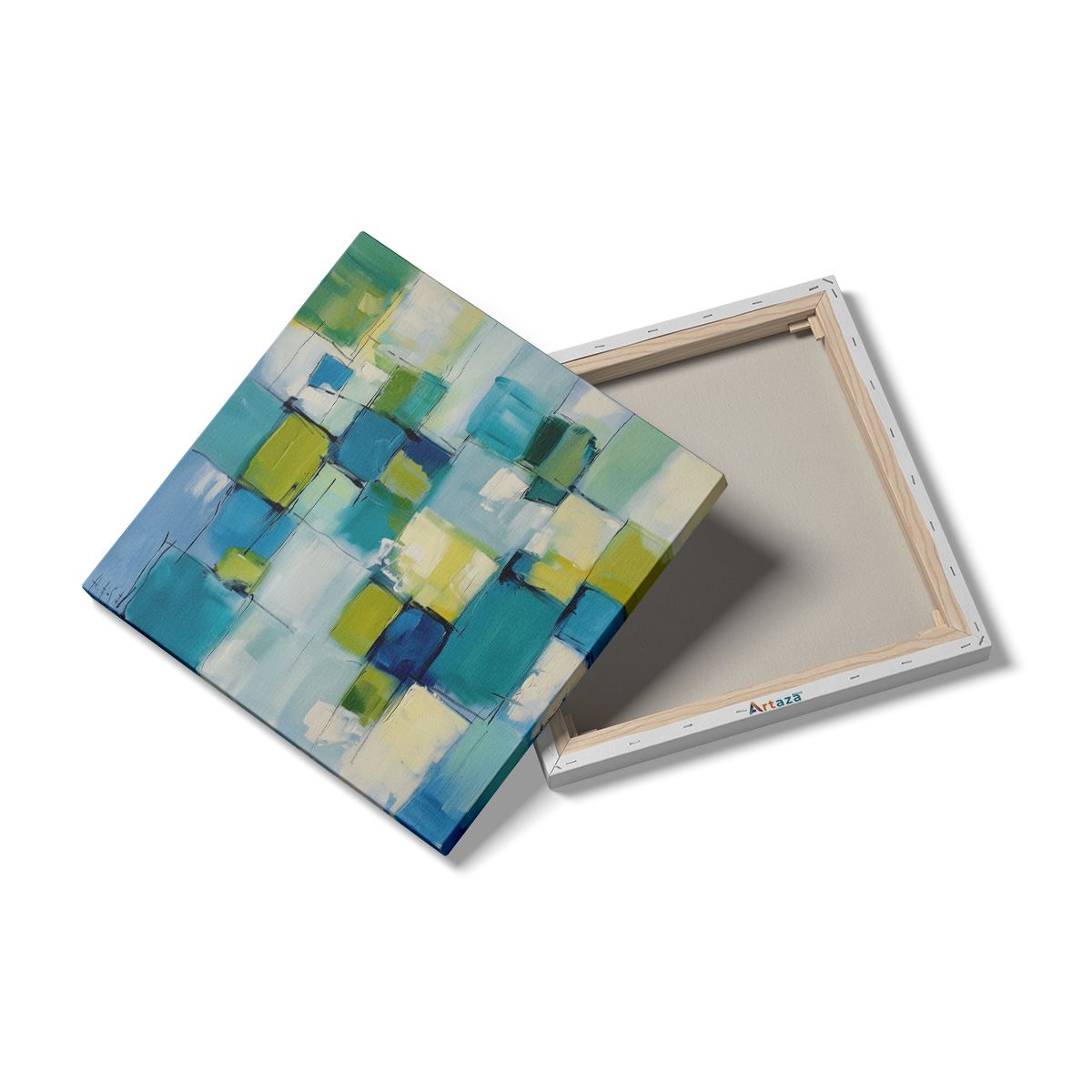 Schilderij Abstract Kunstwerk met Blauwe, Groene en Gele Vierkanten