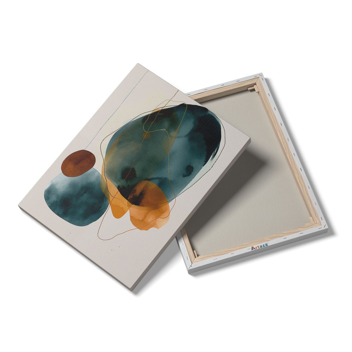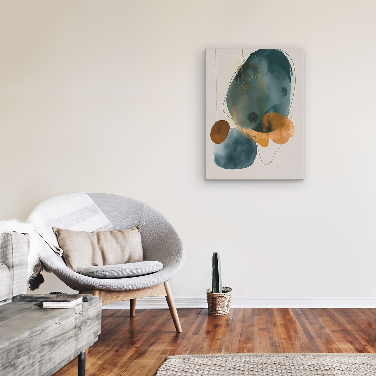 Schilderij Abstract Kunstwerk met Blauwe, Oranje en Bruine Kleuren