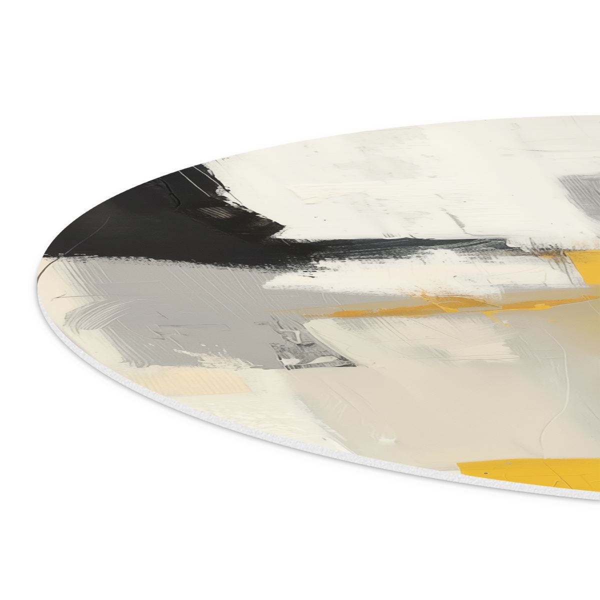 Wandcirkel Abstract Kunstwerk met Gele, Zwarte en Witte Vierkanten