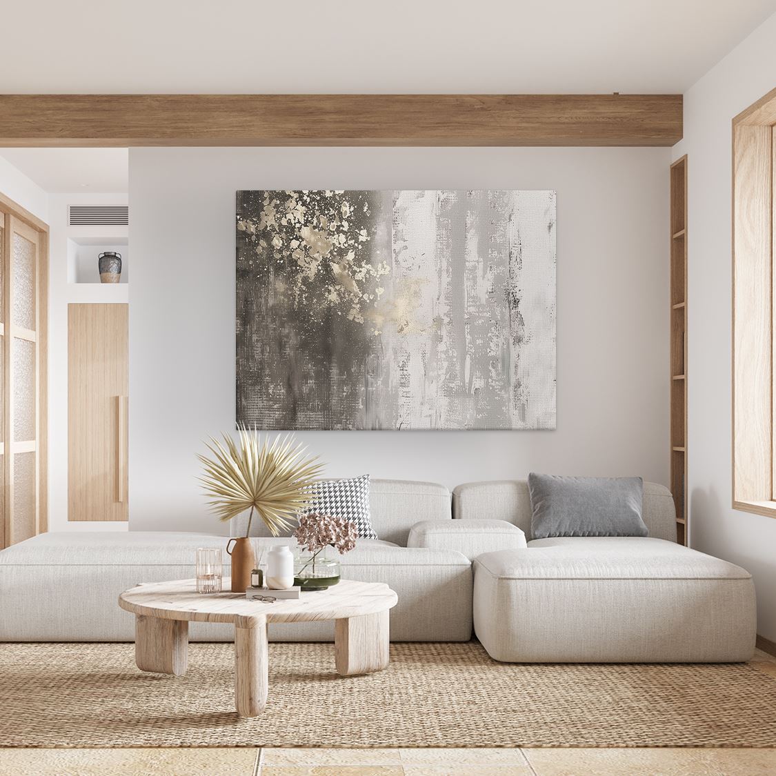 Schilderij Abstract Kunstwerk met Gouden en Zilveren Spetters