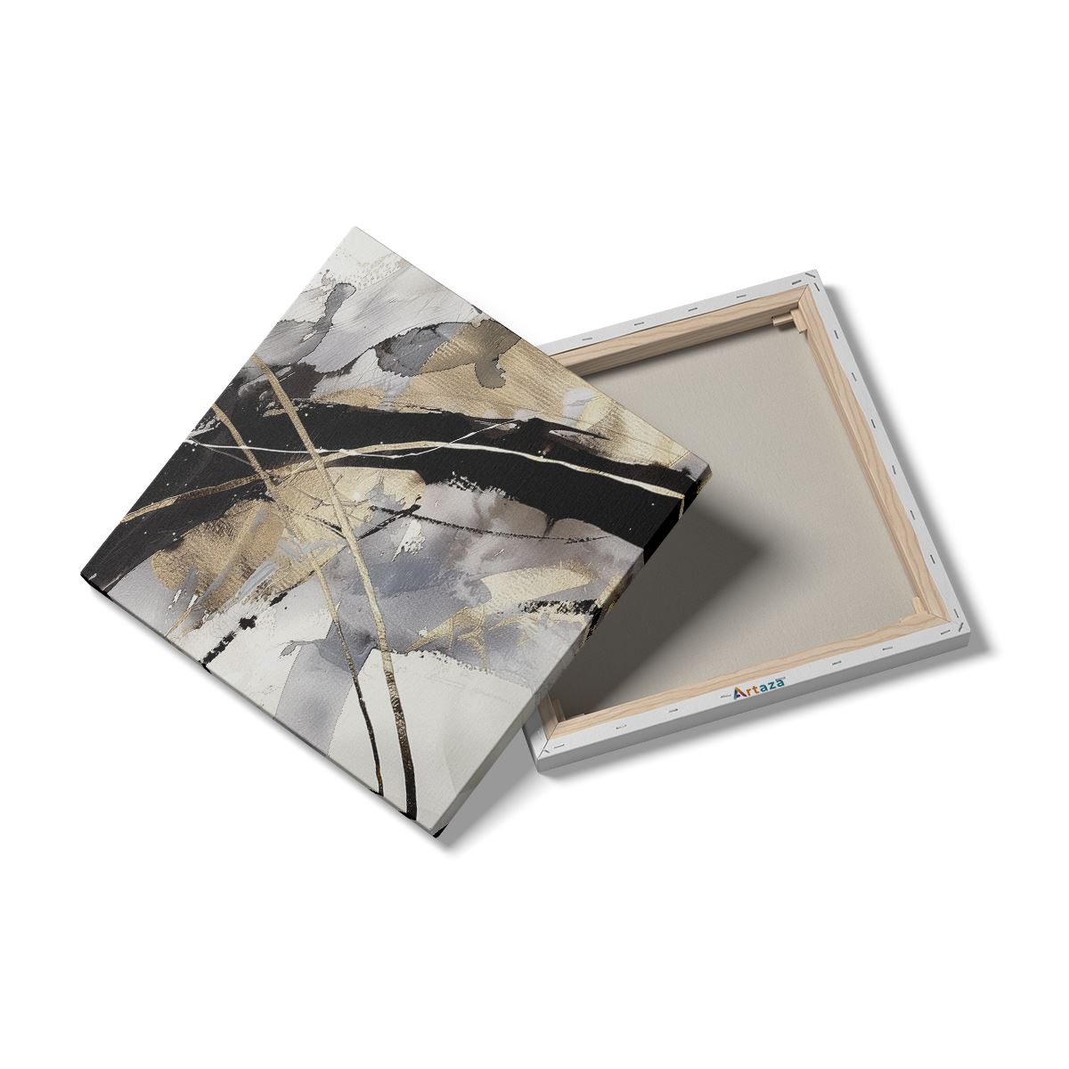 Schilderij Abstract Kunstwerk met Gouden en Zwarte Lijnen
