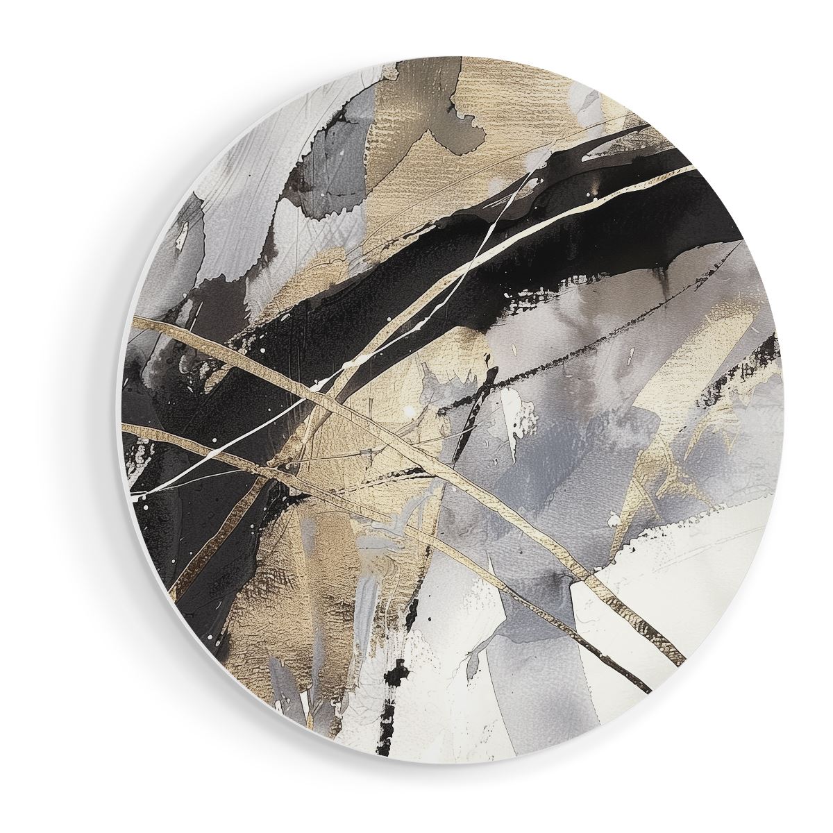 Wandcirkel Abstract Kunstwerk met Gouden en Zwarte Lijnen