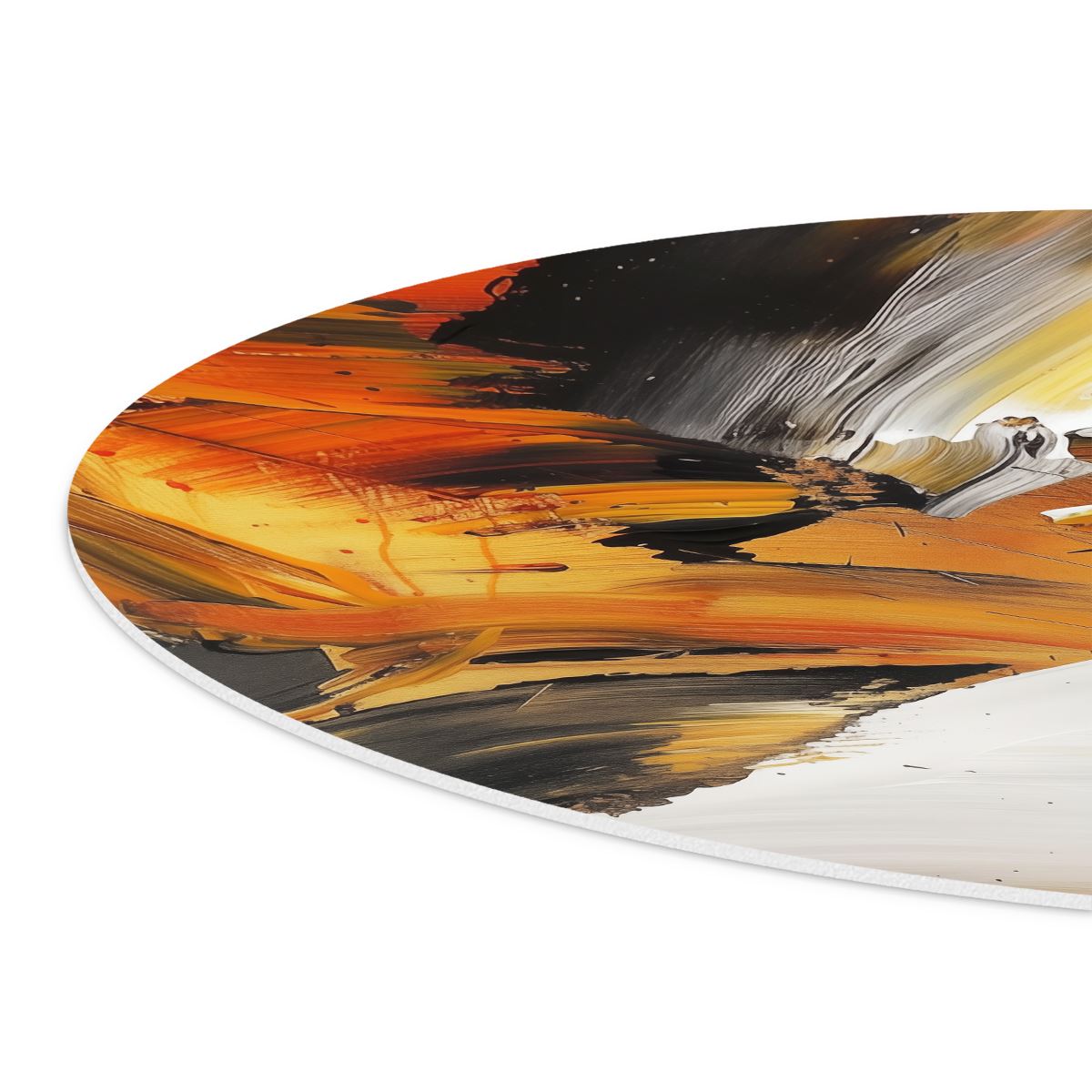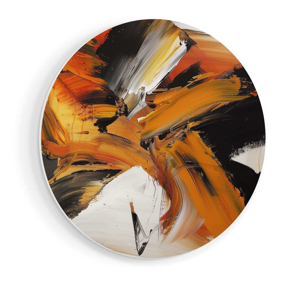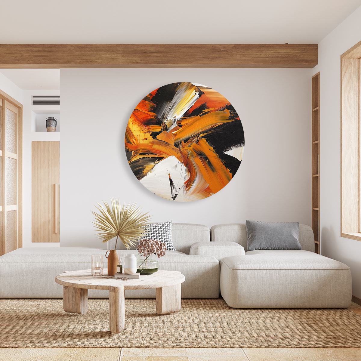 Wandcirkel Abstract Kunstwerk met Oranje en Zwarte Strepen