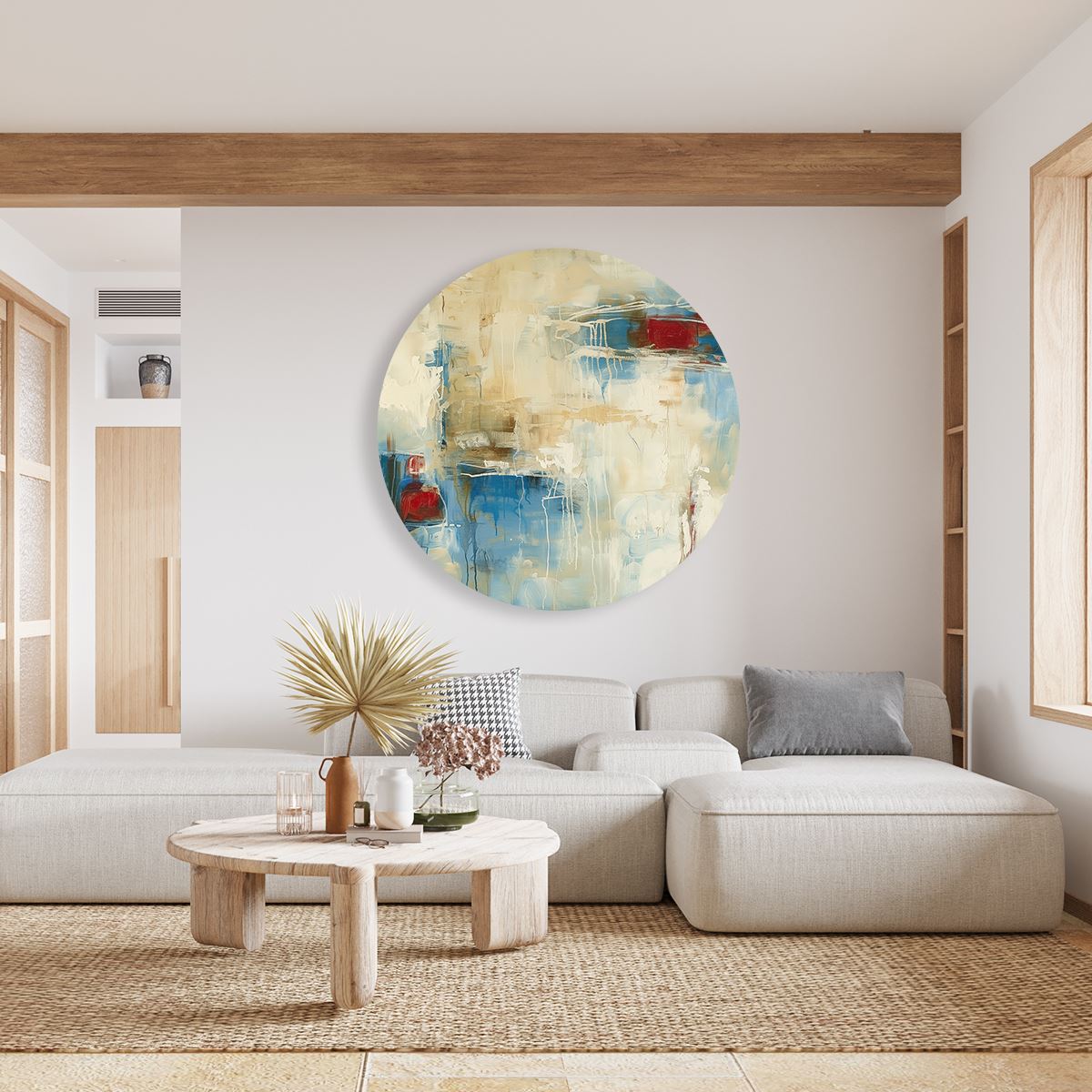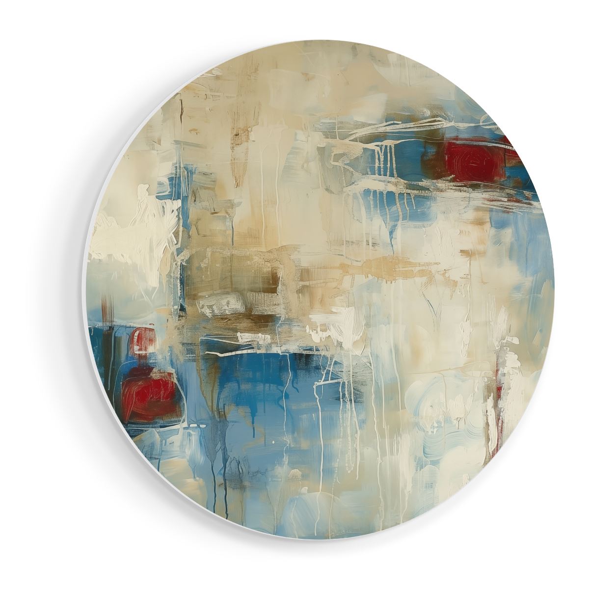 Wandcirkel Abstract Kunstwerk met Rode, Blauwe en Witte Kleuren