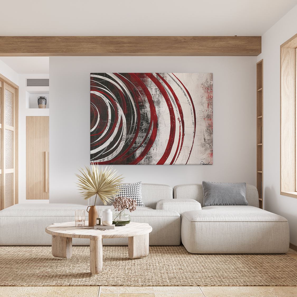 Schilderij Abstract Kunstwerk met Rode en Witte Wervelingen