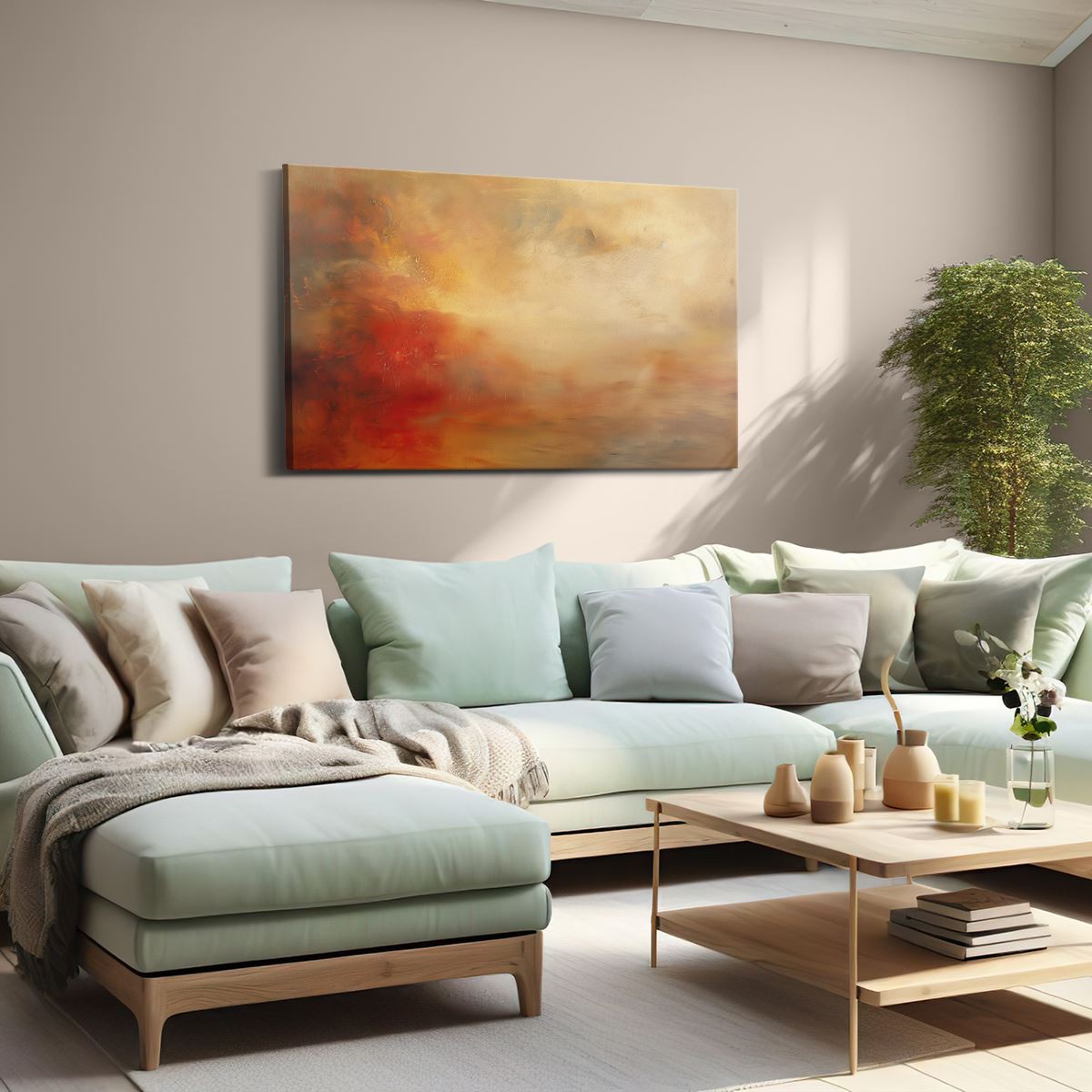 Schilderij Abstract Kunstwerk met Rode, Gele en Oranje Kleuren