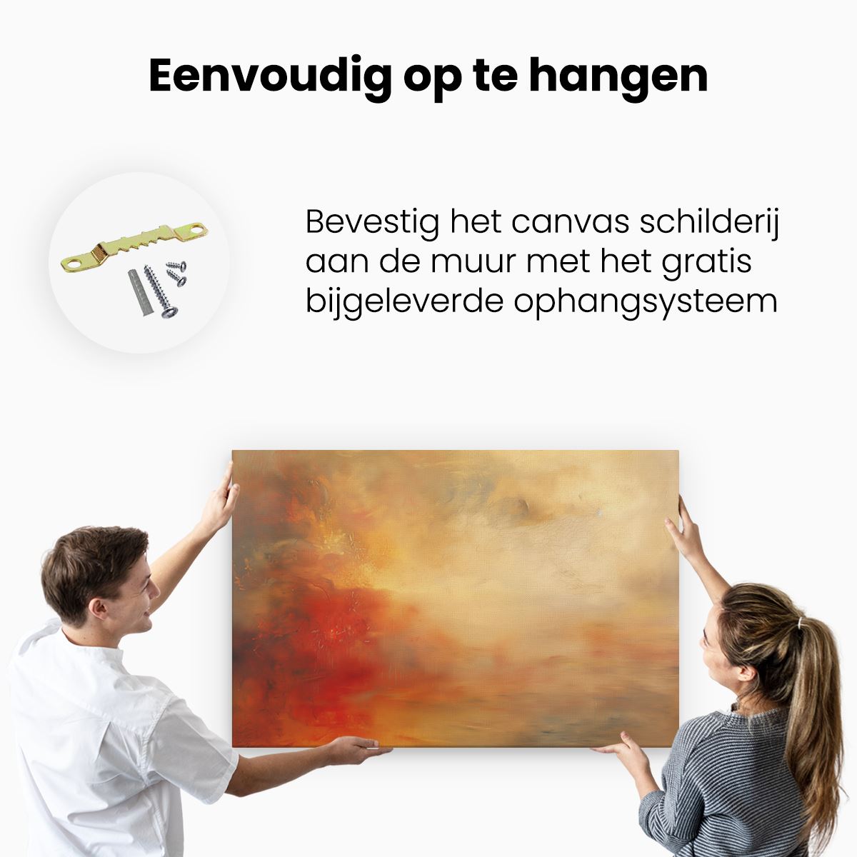 Bij aankoop ontvang je een meegeleverd ophangsysteem, zodat je op een simpele en snelle wijze het schilderij boven de bank of bed kan monteren.