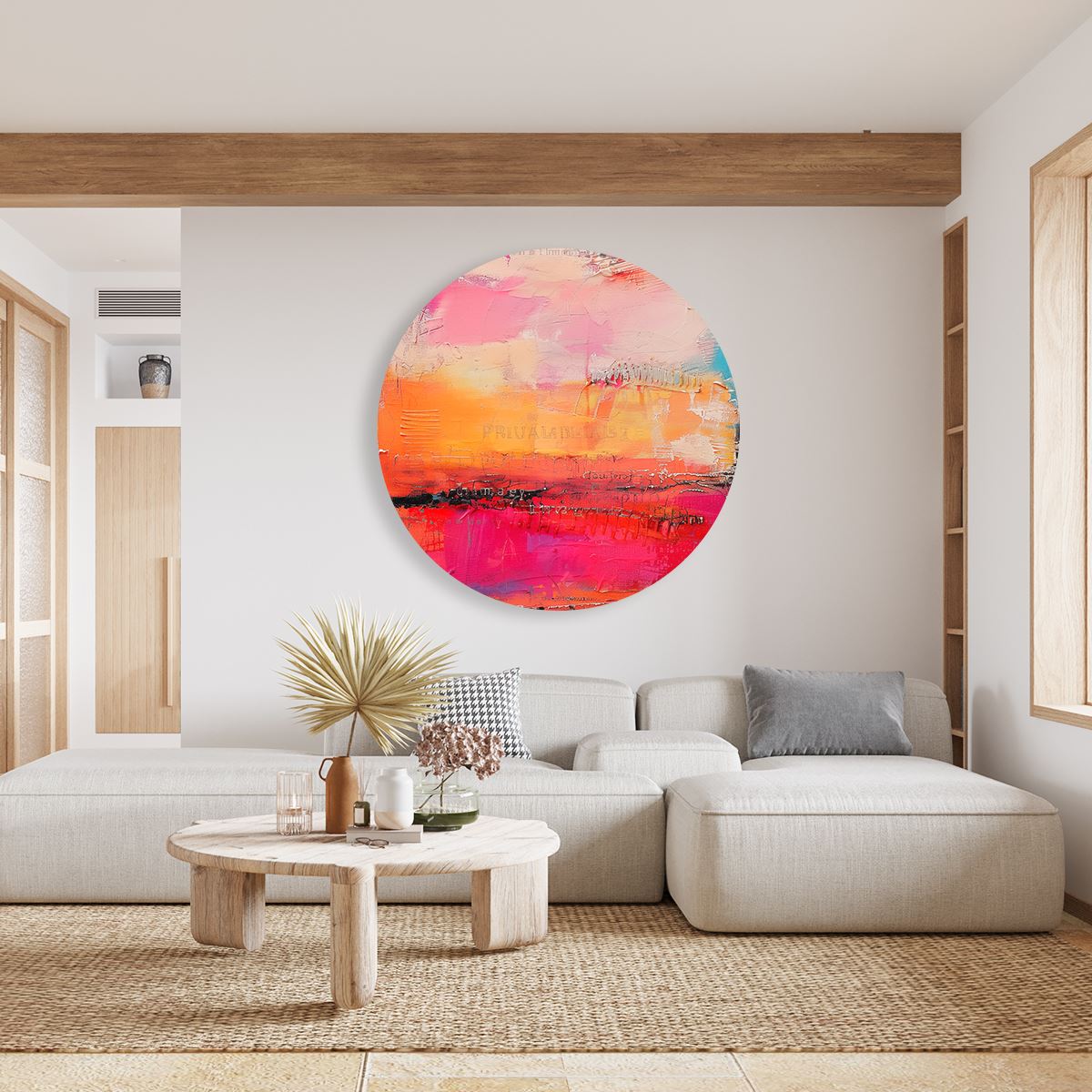 Wandcirkel Abstract Kunstwerk met Roze, Oranje en Blauwe Kleuren