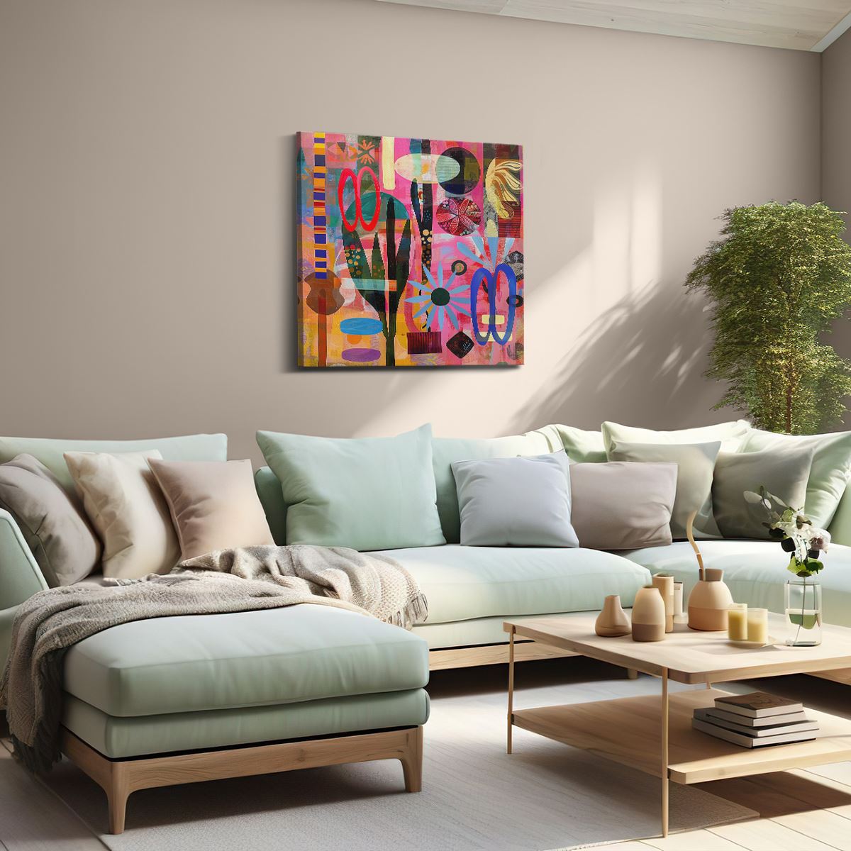 Schilderij Abstract Kunstwerk met veel Verschillende Vormen en Kleuren