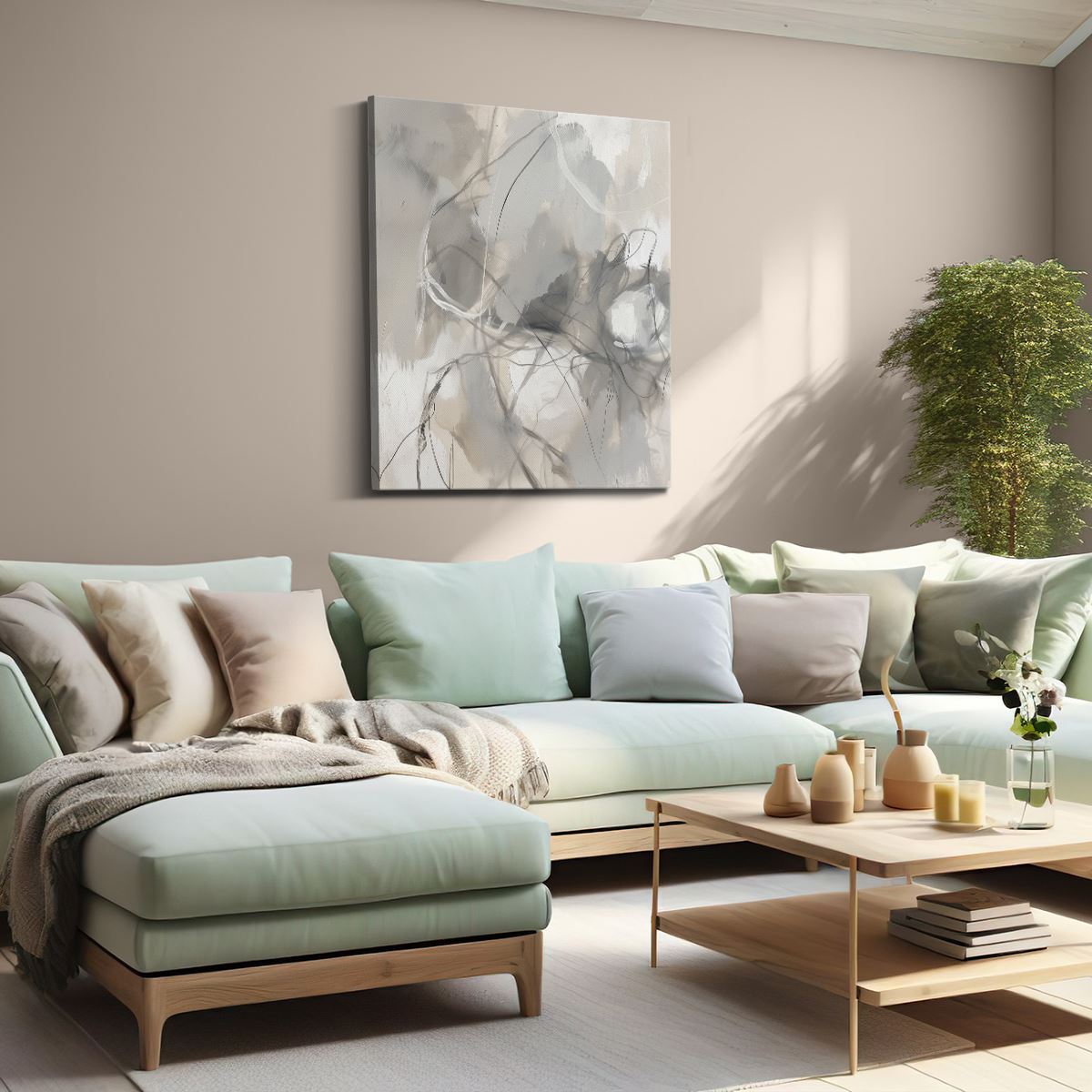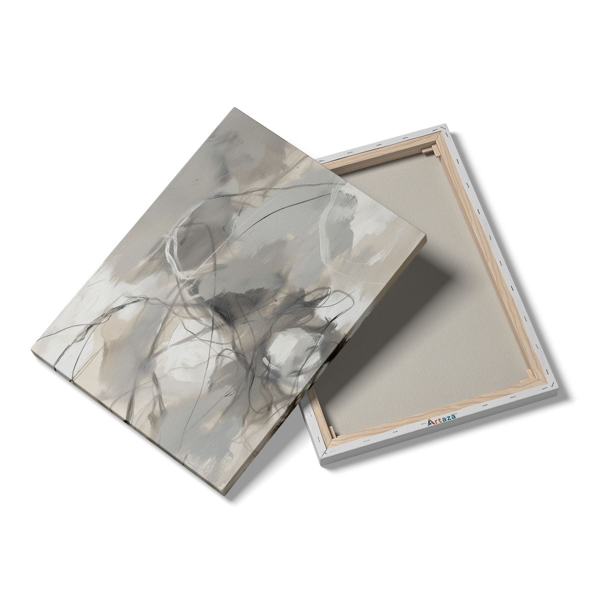 Schilderij Abstract Kunstwerk met Witte en Grijze Penseelstreken