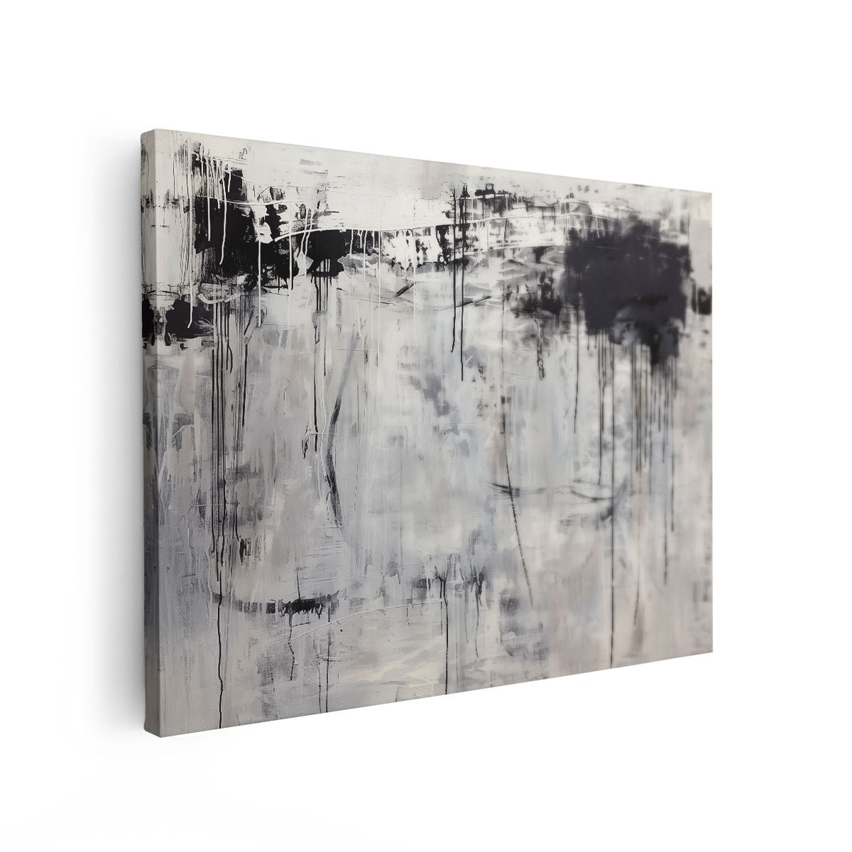 Schilderij Abstract Kunstwerk met Zwart Witte Splatters