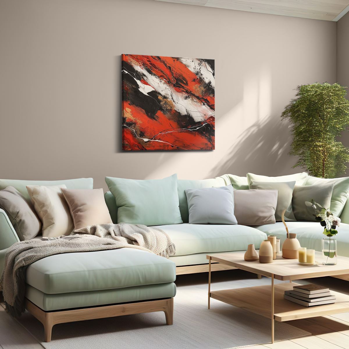 Schilderij Abstract Kunstwerk met Zwarte en Rode Kleuren