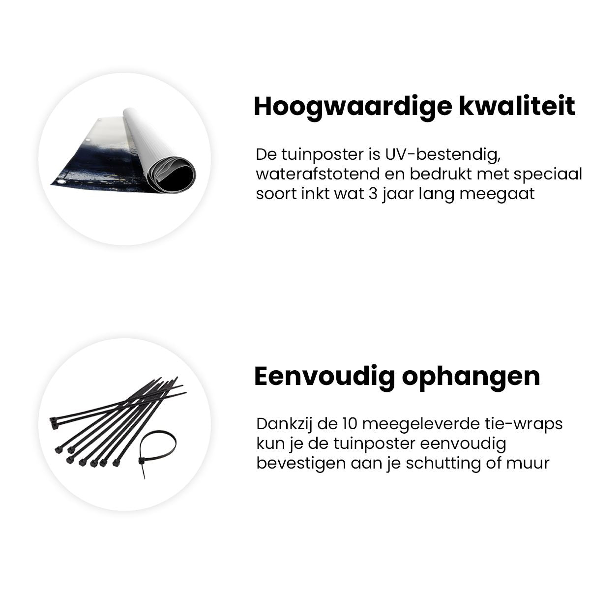 Bij aankoop ontvang je een meegeleverd ophangsysteem, zodat je op een simpele en snelle wijze de tuinposter kan ophangen.