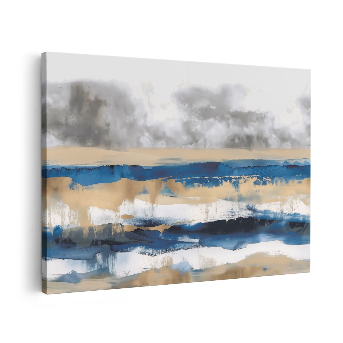 Schilderij Abstract Kunstwerk van Blauw en Beige