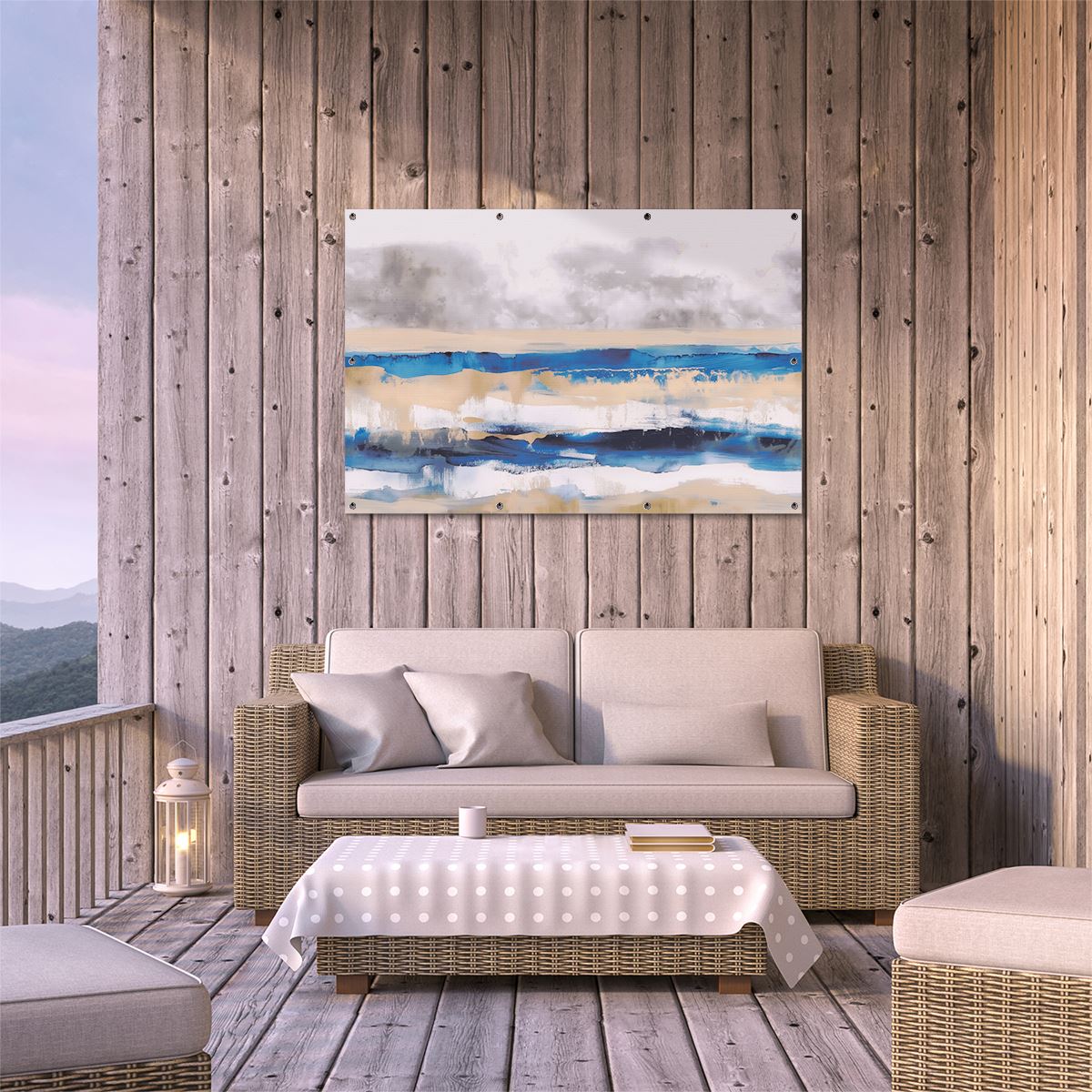 Tuinposter Abstract Kunstwerk van Blauw en Beige