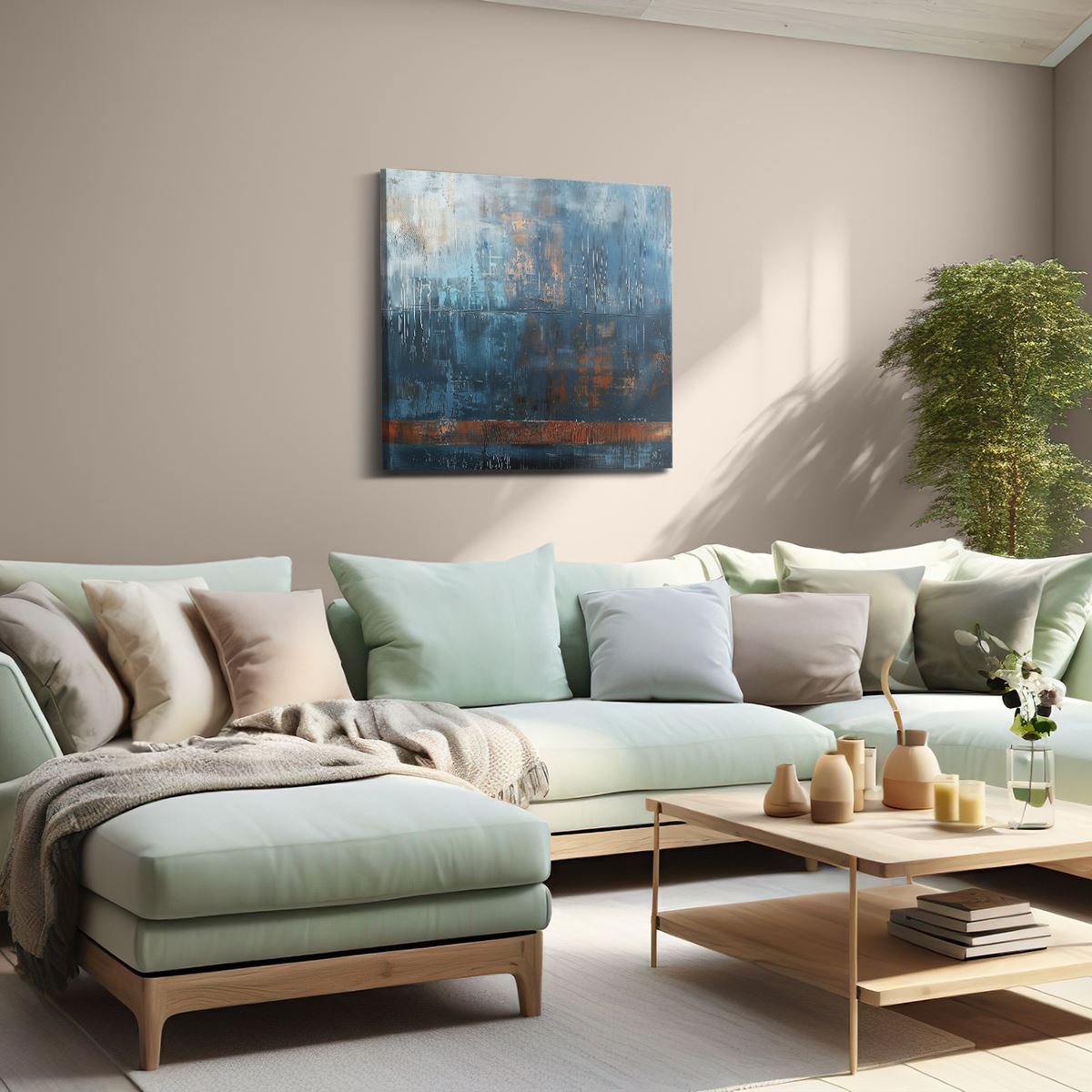 Schilderij Abstract Kunstwerk van Blauw en Oranje