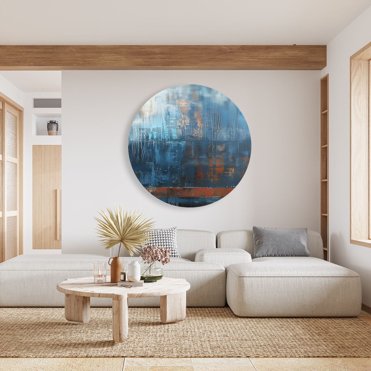 Wandcirkel Abstract Kunstwerk van Blauw en Oranje