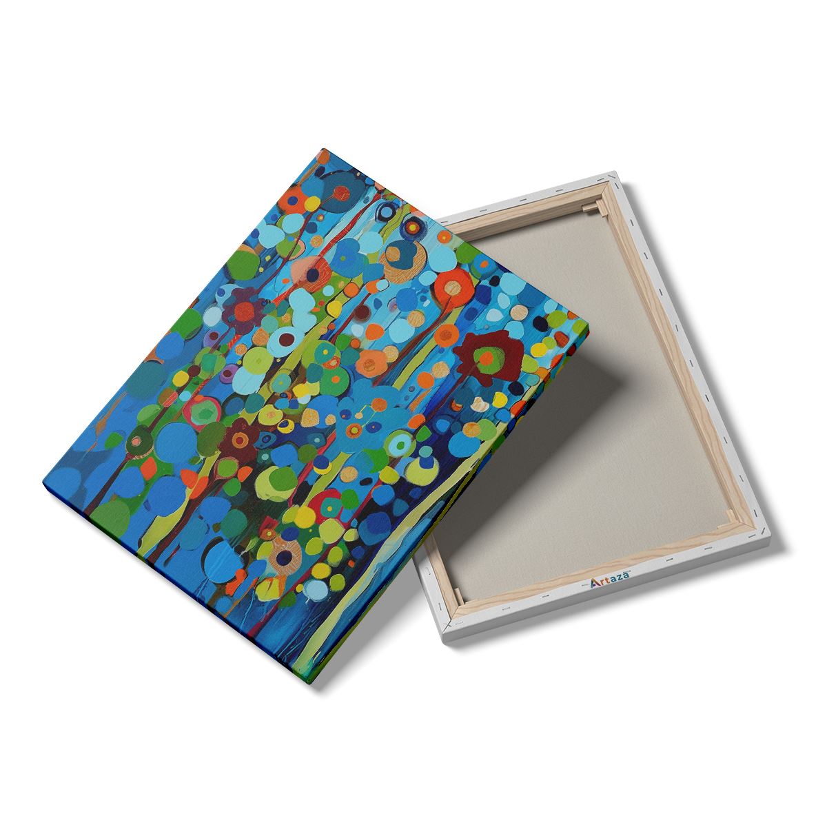 Schilderij Abstract Kunstwerk van Blauwe en Oranje Bloemen
