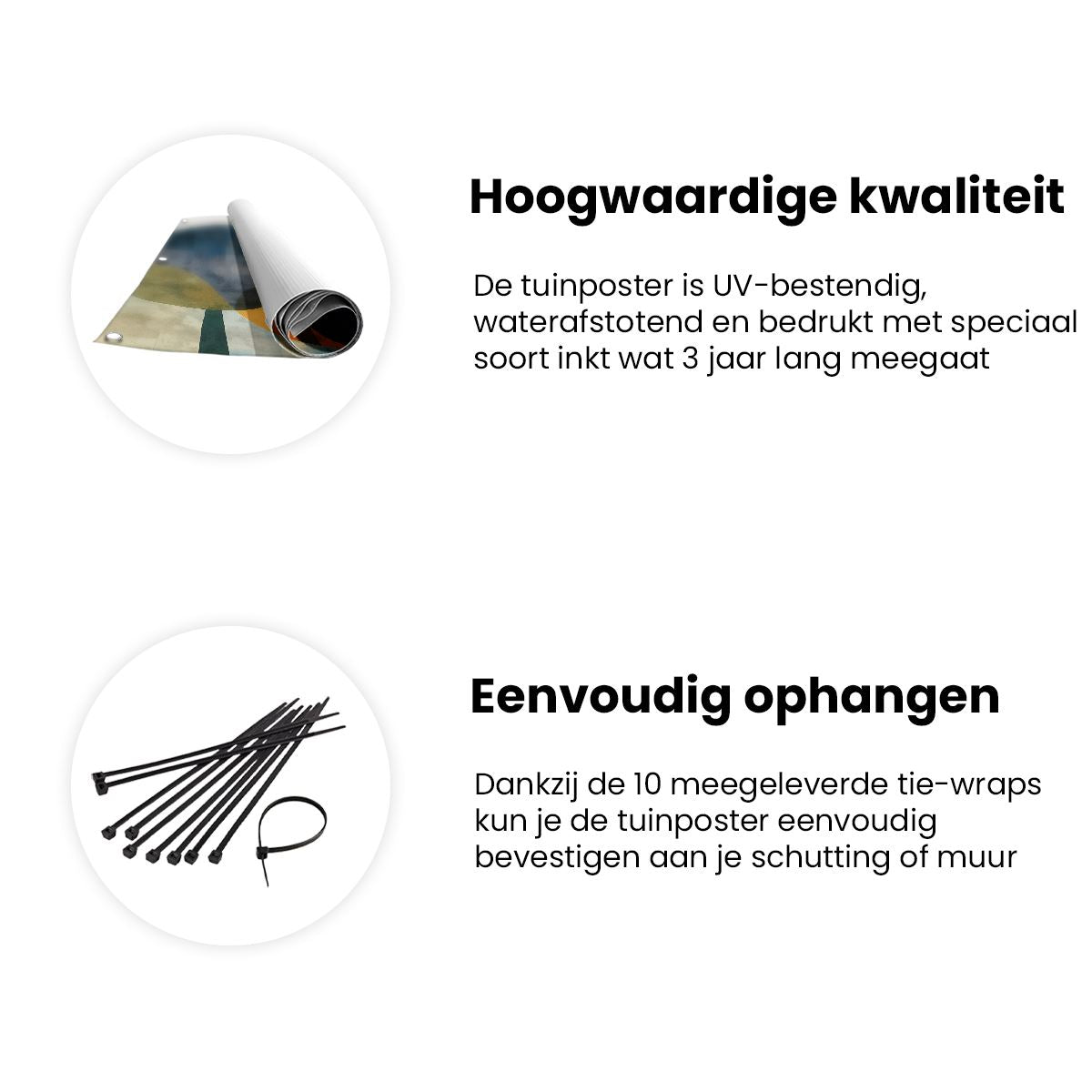 Bij aankoop ontvang je een meegeleverd ophangsysteem, zodat je op een simpele en snelle wijze de tuinposter kan ophangen.
