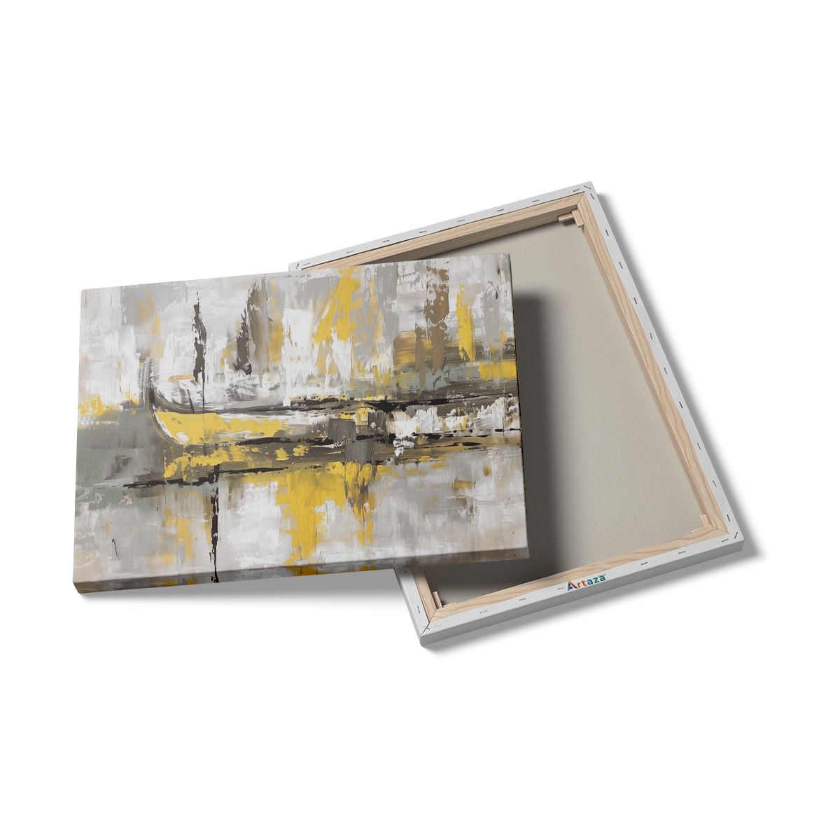Schilderij Abstract Kunstwerk van Boten in Geel en Grijs