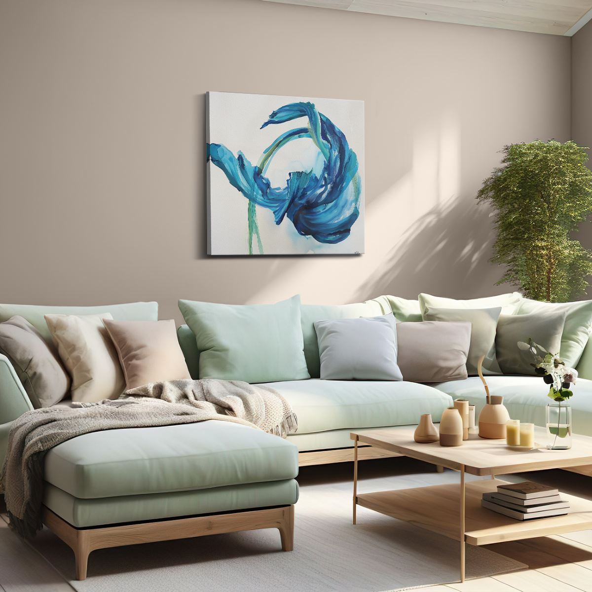 Schilderij Abstract Kunstwerk van een Blauwe Bloem