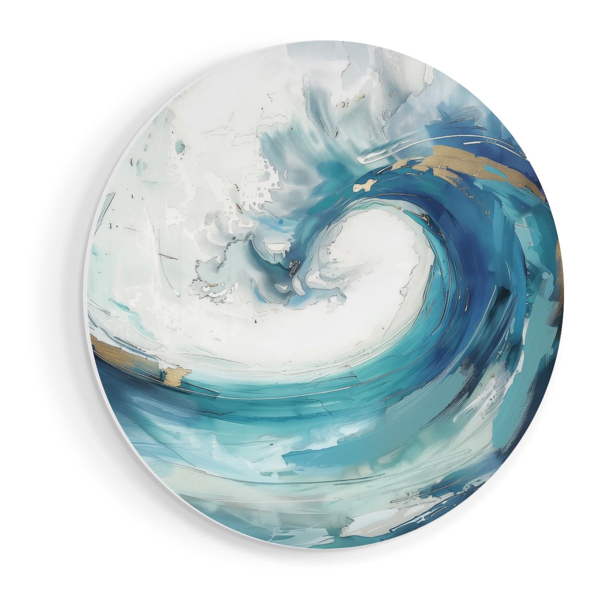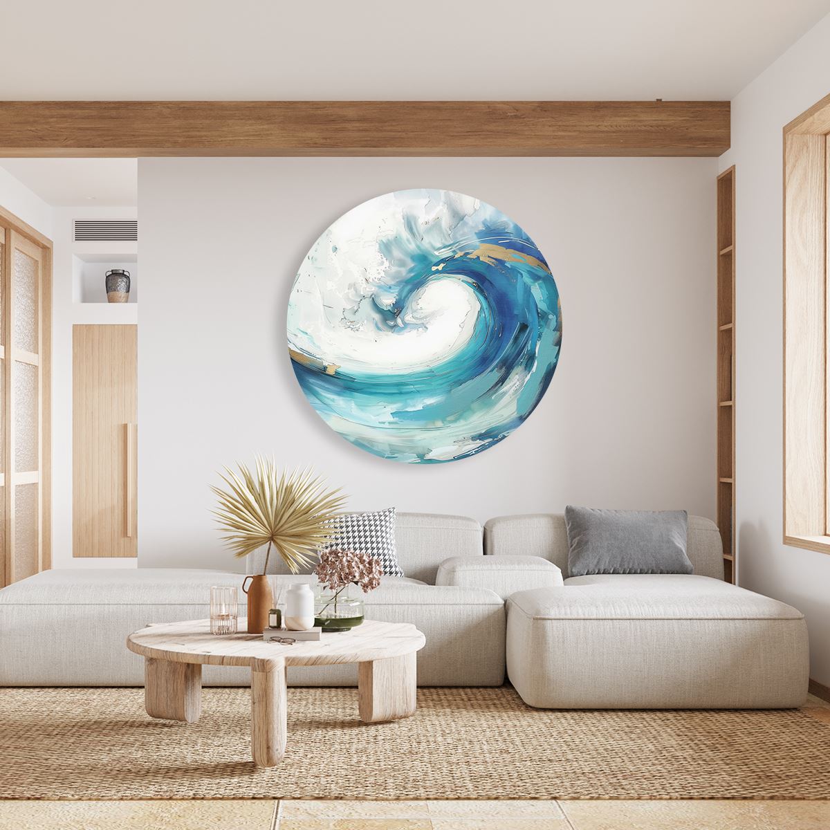 Wandcirkel Abstract Kunstwerk van een Blauwe en Witte Golf