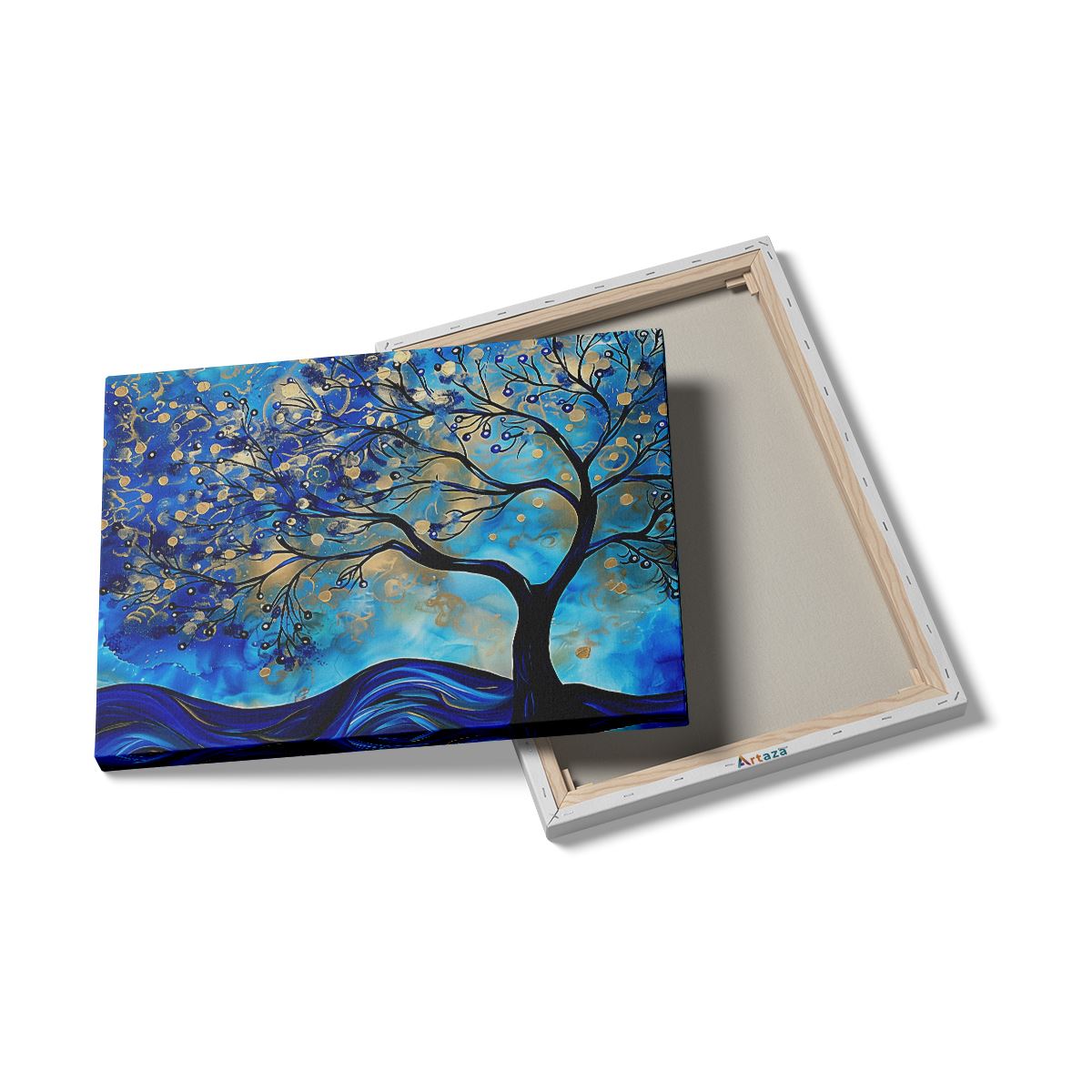 Schilderij Abstract Kunstwerk van een Boom in Blauw en Goud