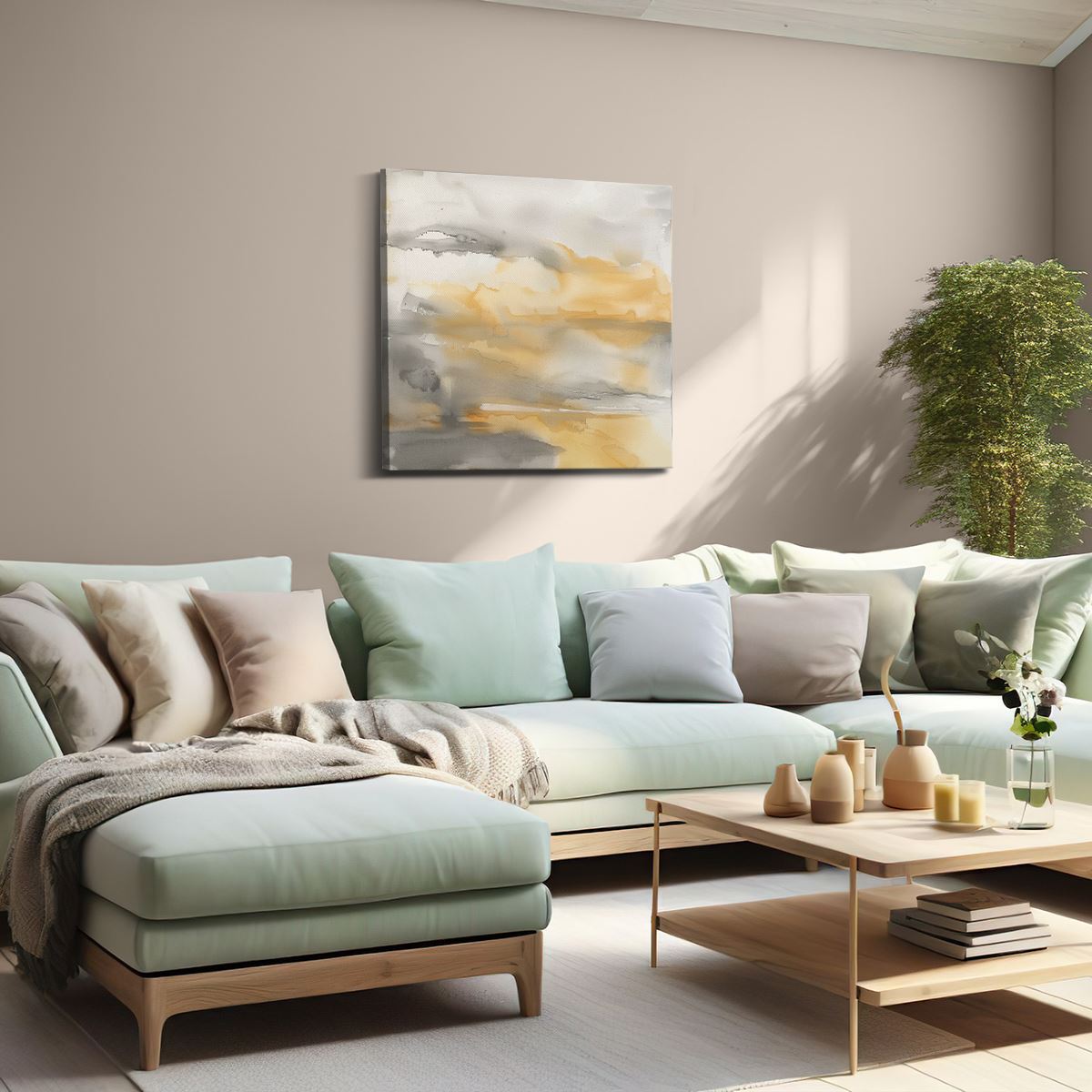 Schilderij Abstract Kunstwerk van een Gele en Grijze Lucht