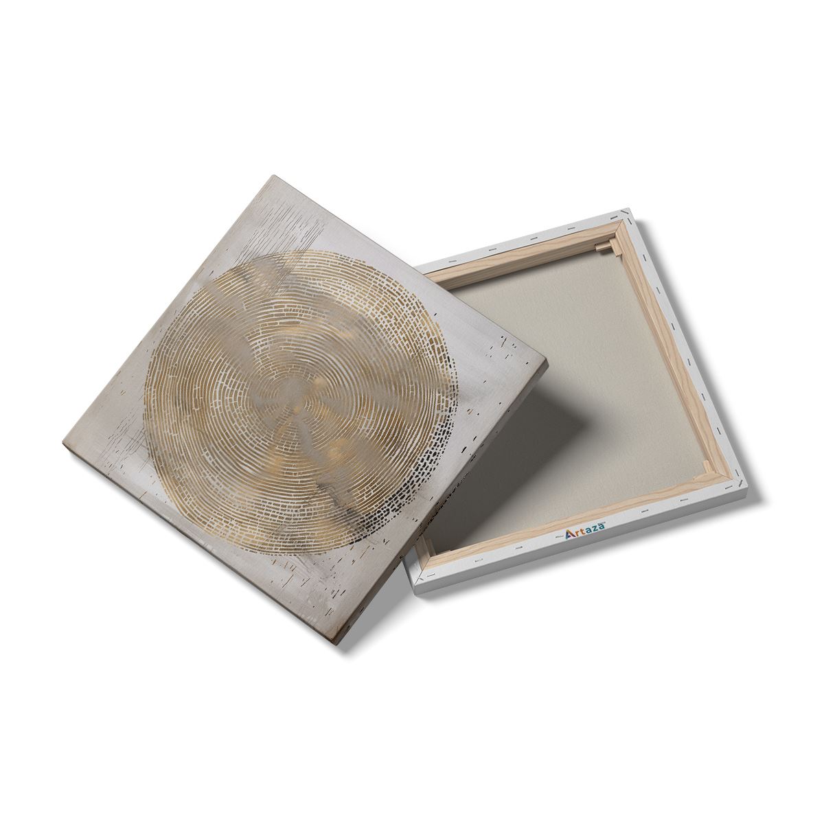 Schilderij Abstract Kunstwerk van een Gouden Cirkel op een Witte Achtergrond