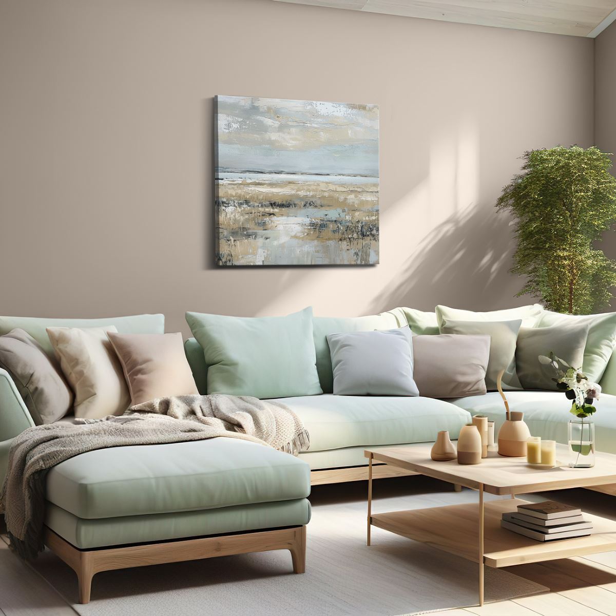 Bij aankoop ontvang je een meegeleverd ophangsysteem, zodat je op een simpele en snelle wijze het schilderij boven de bank of bed kan monteren.