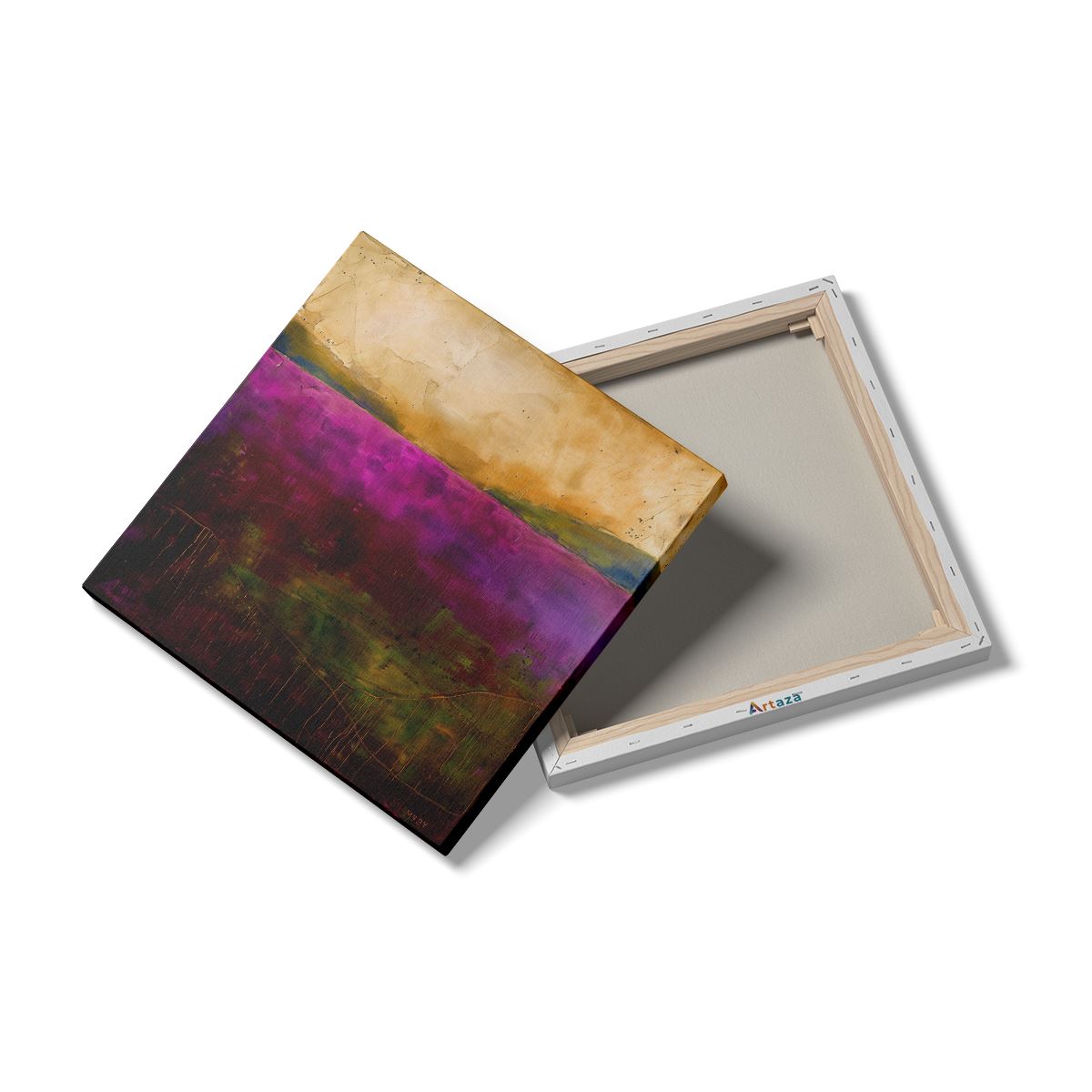 Schilderij Abstract Kunstwerk van een Paars en Goudlandschap