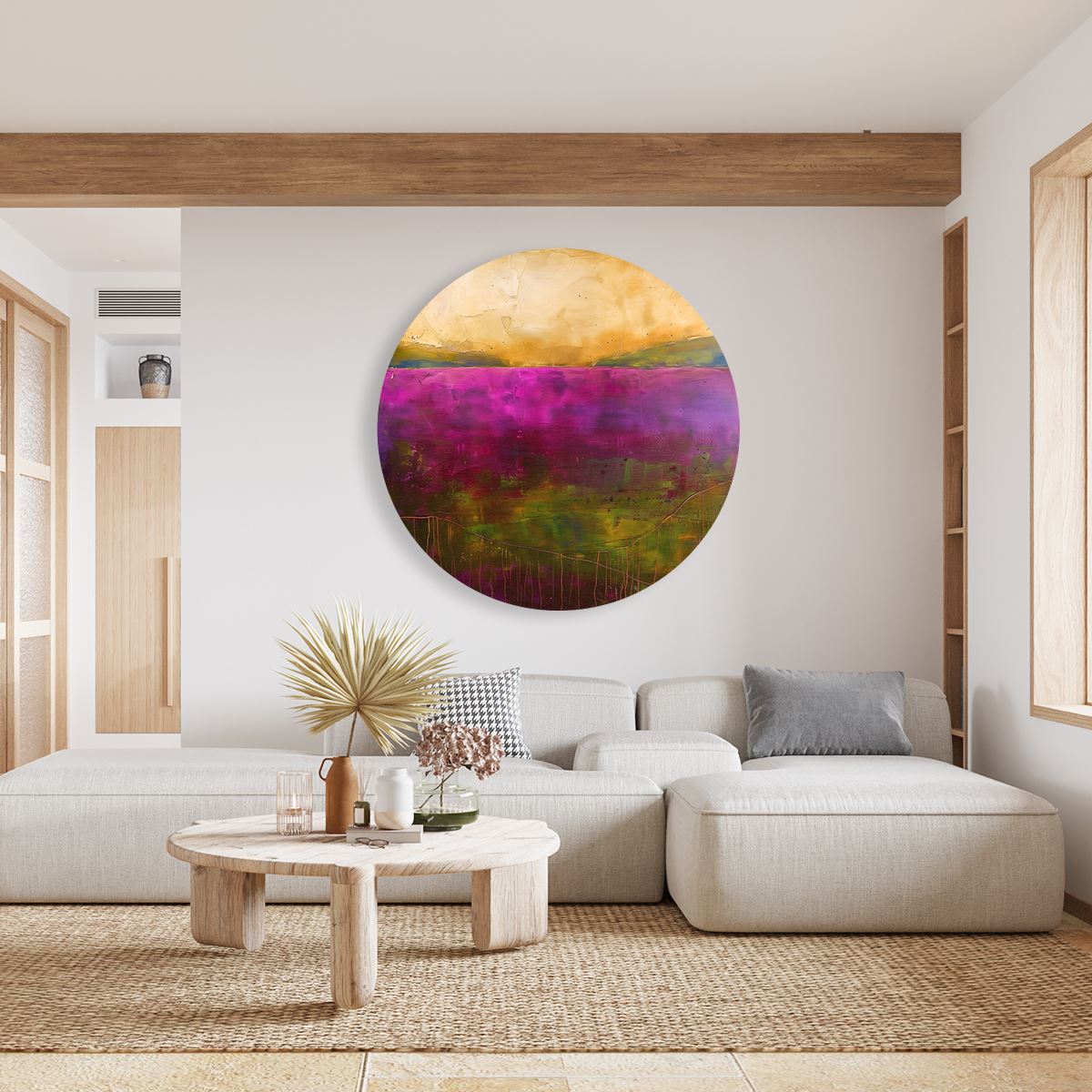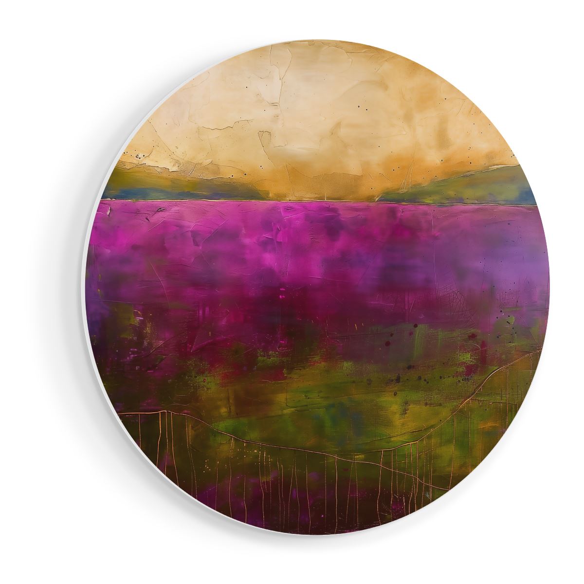 Wandcirkel Abstract Kunstwerk van een Paars en Goudlandschap